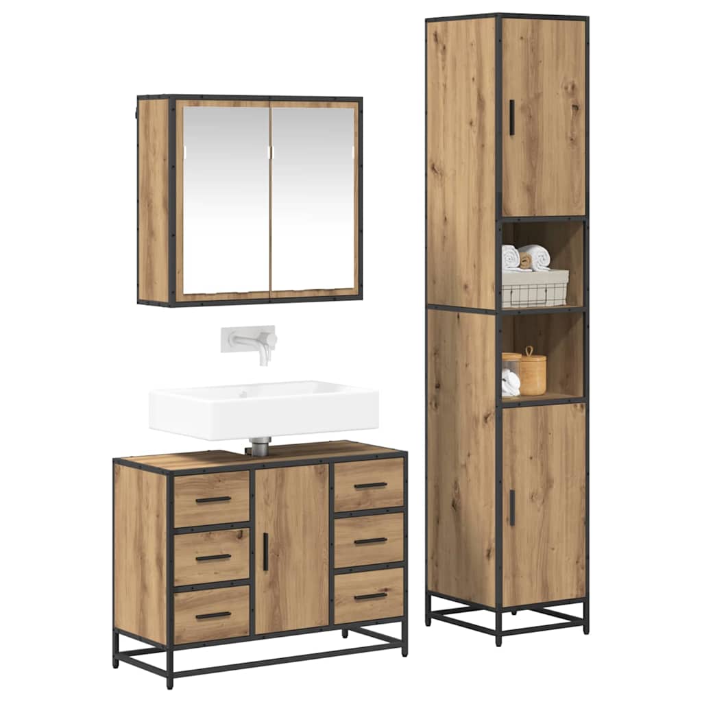 - Engineered Hout Constructie Gemaakt van engineered wood, biedt deze badkamer set sterke duurzaamheid en is vochtbestendig, perfect voor de wisselende omstandigheden in badkamers. Het gepolijste oppervlak past goed bij moderne stijlen en belooft een lange levensduur tijdens dagelijks gebruik, waardoor onderhoud heel eenvoudig is.