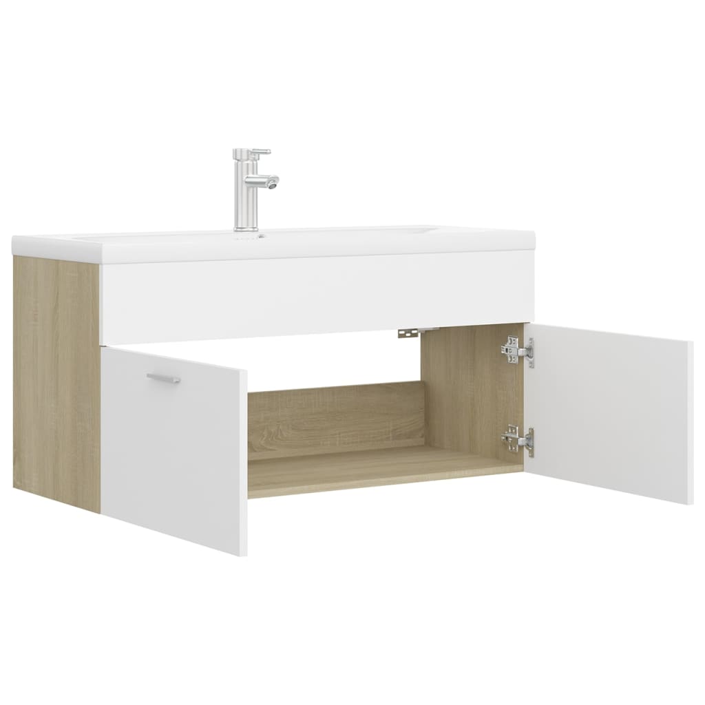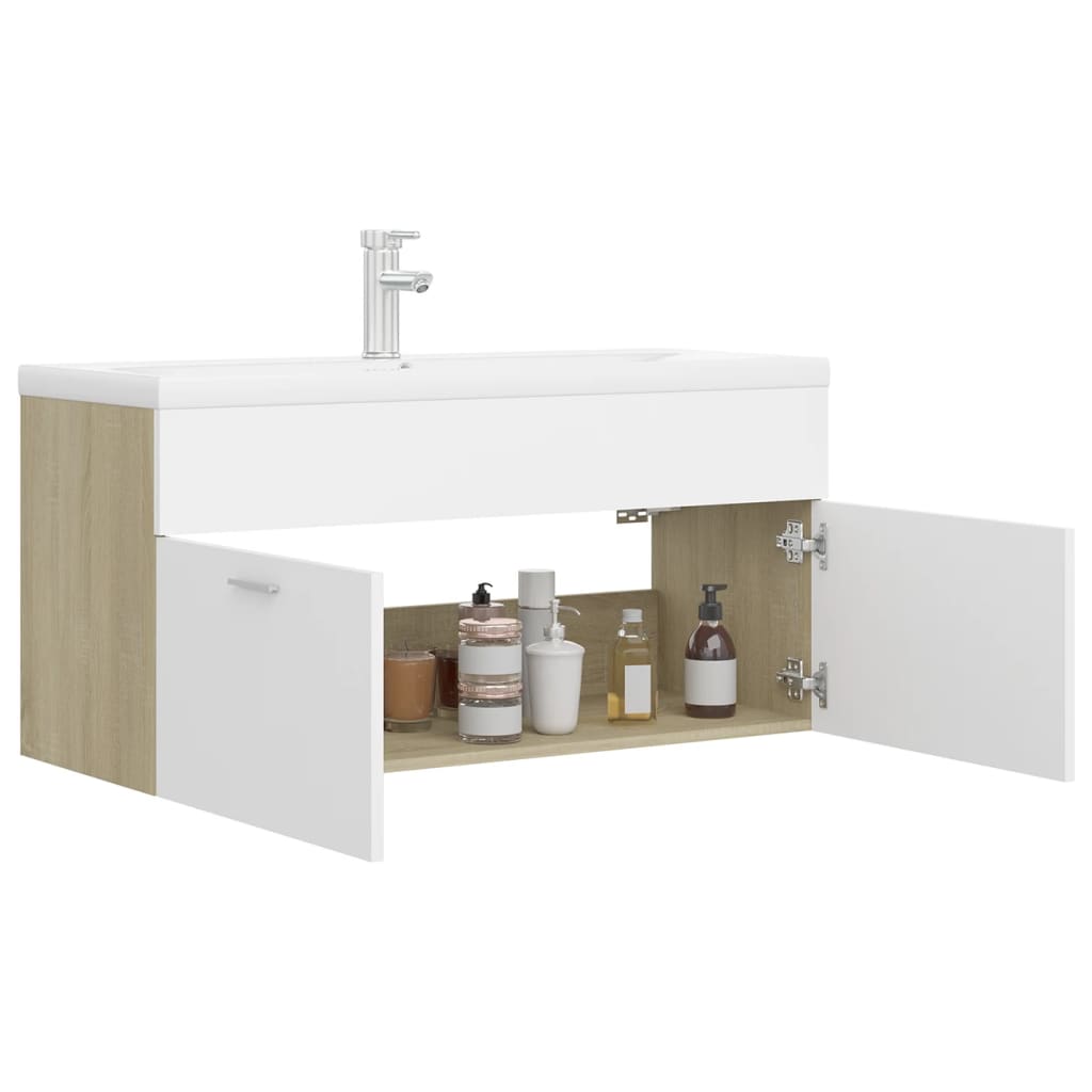 Deze kast is gemaakt van bewerkt hout, waardoor hij stevig en stabiel is. De opbergkast heeft 1 vak en 2 deuren, en biedt voldoende ruimte om spullen in je badkamer op te bergen. Hij past perfect onder je wastafel en biedt handige opslagruimte in de badkamer. De wastafel is gemaakt van keramiek en dient niet alleen als product voor dagelijks gebruik, maar ook als versiering in je leefruimte. Dankzij zijn trendy en eigentijdse ontwerp past deze wastafel in elk interieur. De overloop zorgt ervoor dat de bak nooit kan overlopen. Het geglazuurde oppervlak geeft een modern en elegant tintje aan deze wastafel. Bovendien zijn de kast en wastafel eenvoudig te reinigen met een vochtige doek.
