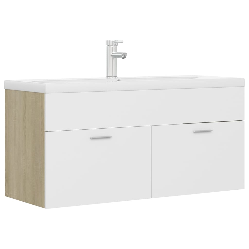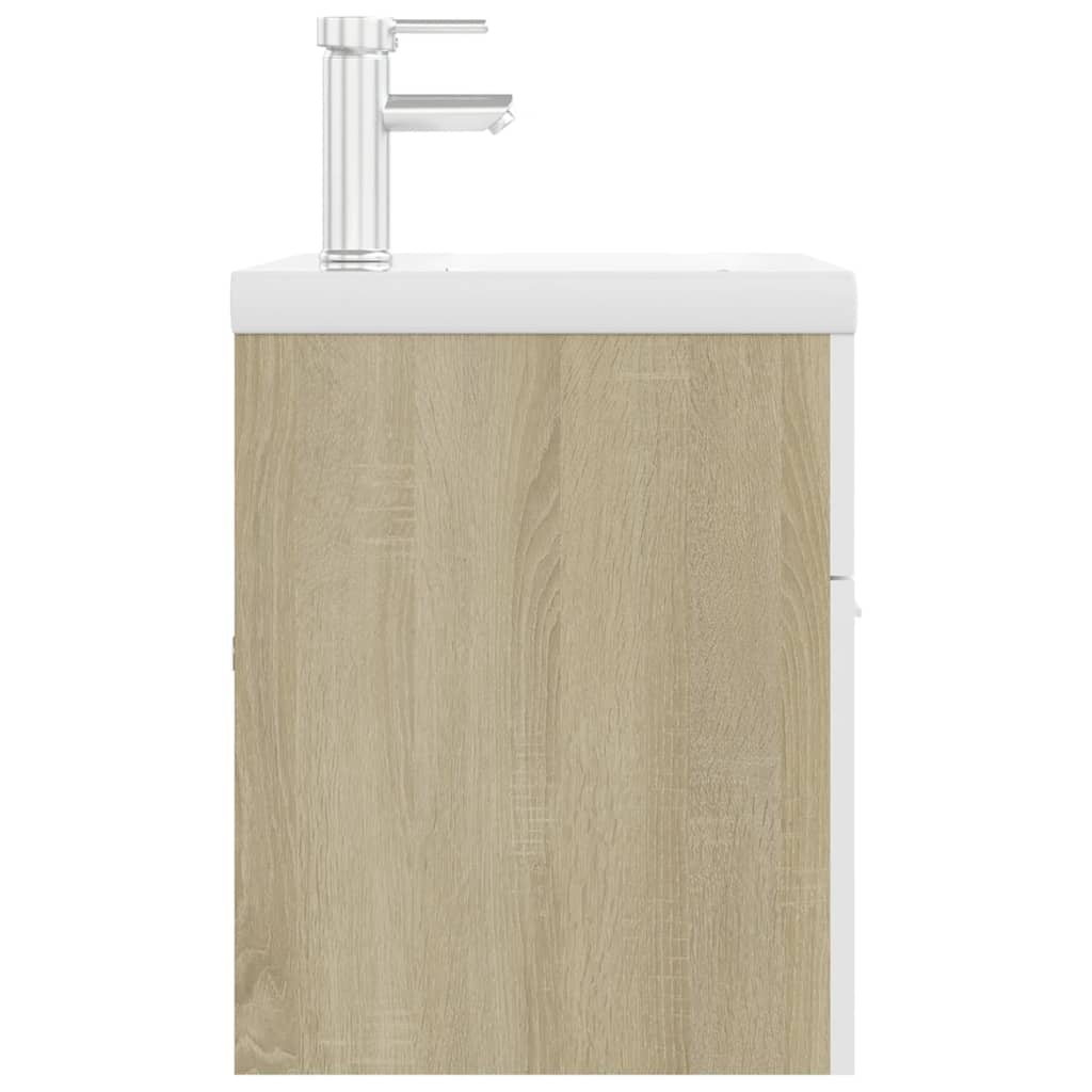 Deze wastafelkast met ingebouwde wastafel past perfect in je badkamer of wasruimte. Hij heeft een opvallende, opgeruimde uitstraling.