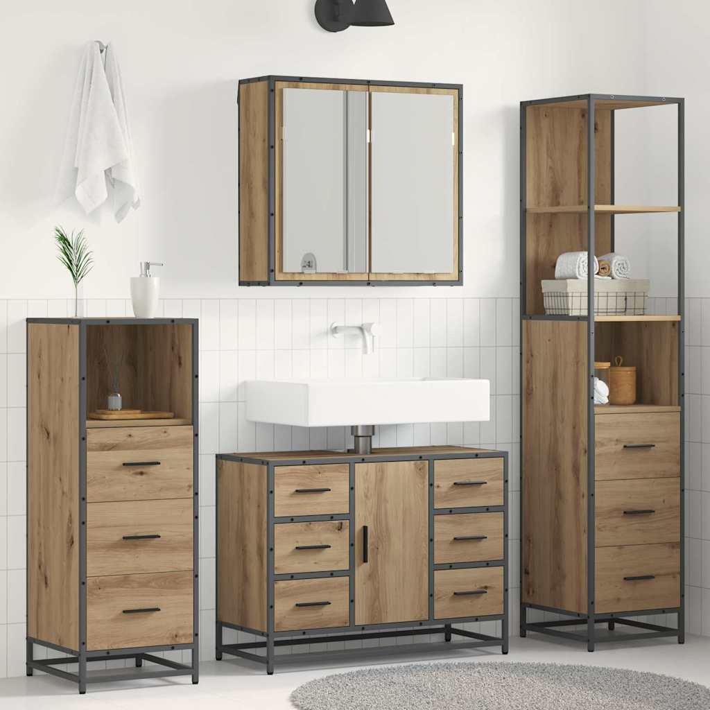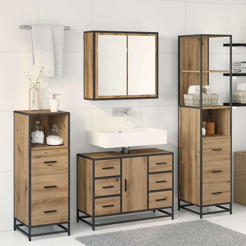 De Moderne Houten Badkamer Meubelset geeft je interieur een boost door functionaliteit en mooi design te combineren in een strakke, minimalistische stijl voor al je badkamerbehoeften. Gemaakt van geperst hout, past het perfect in moderne huizen en biedt het betere gebruiksmogelijkheden met praktische compartimenten. De stijlvolle zwarte frames en geperste houten oppervlakken zorgen voor een elegant en handig uiterlijk.