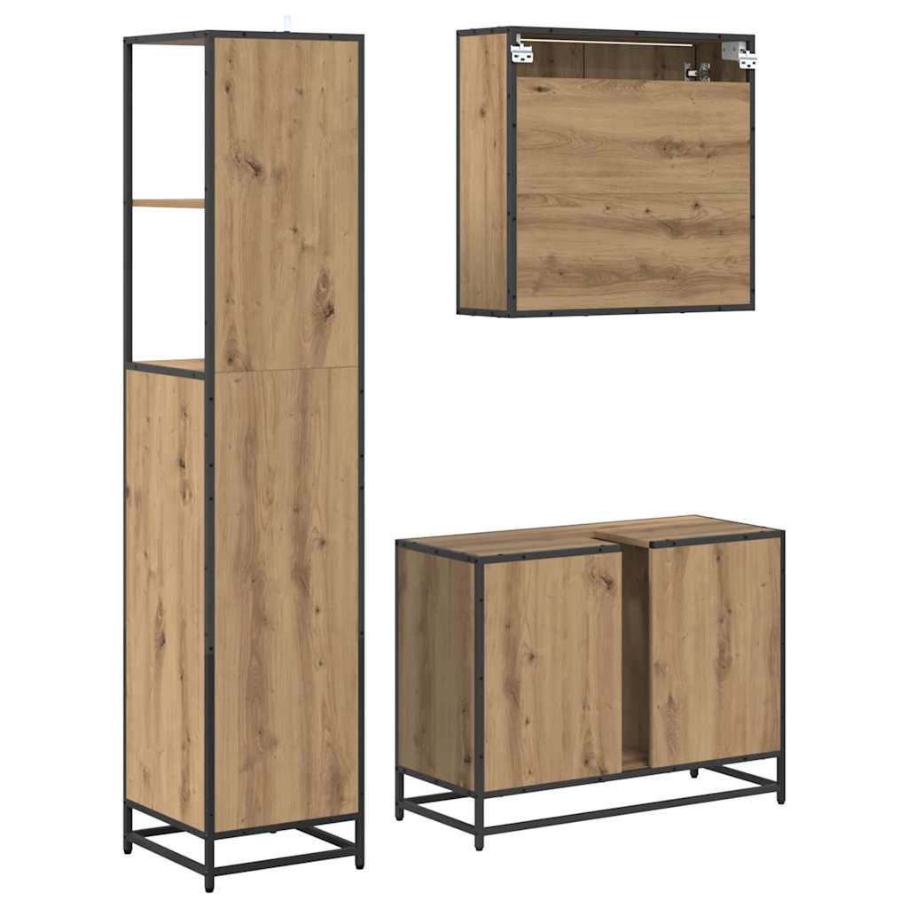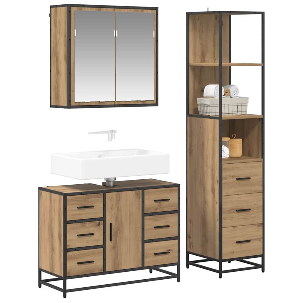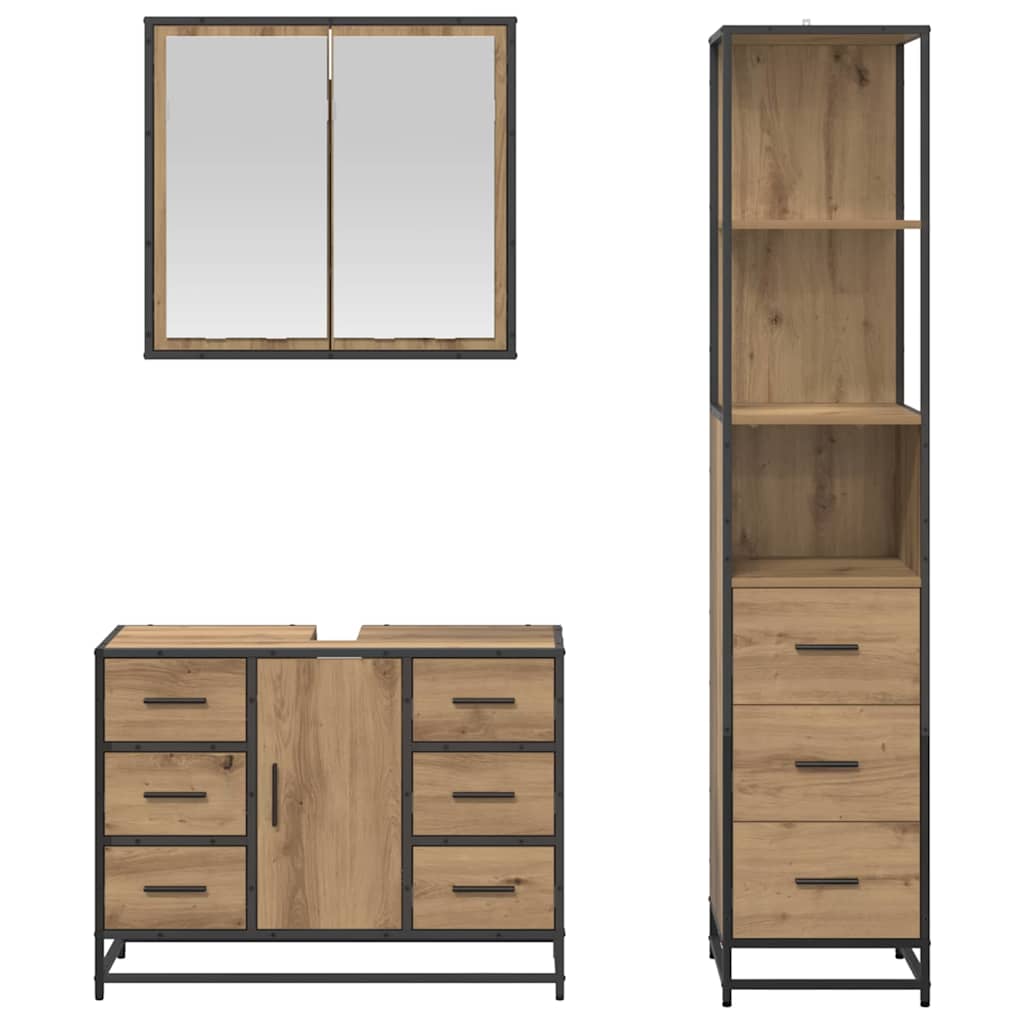 - Compleet Pakket: Je krijgt een spiegelkast, een wastafelonderkast en een badkamerkast – ideaal voor al je opbergbehoeften. De metalen handgrepen en vlakke deuren zijn zowel stijlvol als praktisch, en creëren een uitnodigende en georganiseerde ruimte.