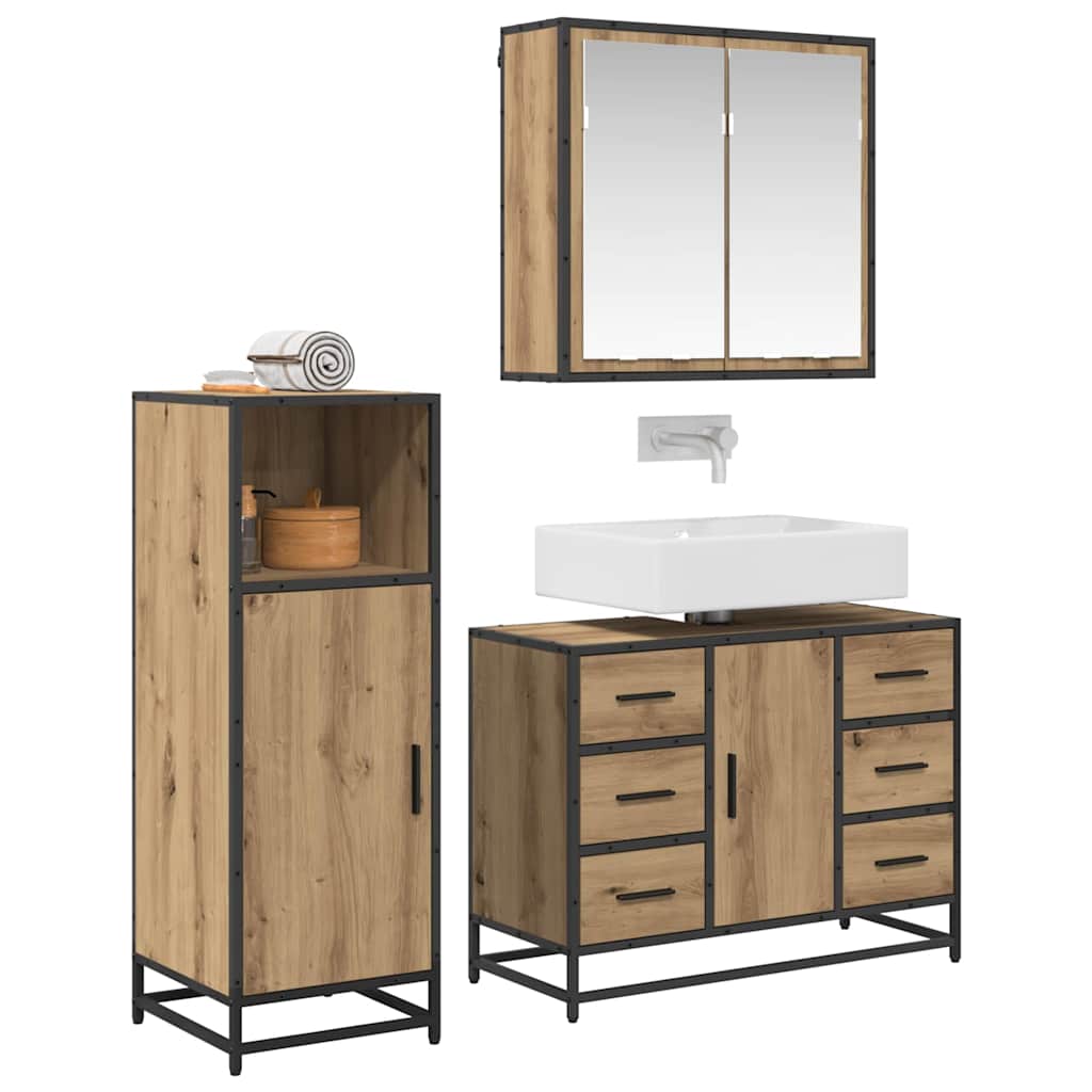 - Inclusief Onderdelen: De set komt met een spiegelkast, een wastafelmeubel en een opbergkast. Ideaal voor al je badkamerbenodigdheden, met verschillende opbergmogelijkheden zodat alles netjes en makkelijk bereikbaar is.