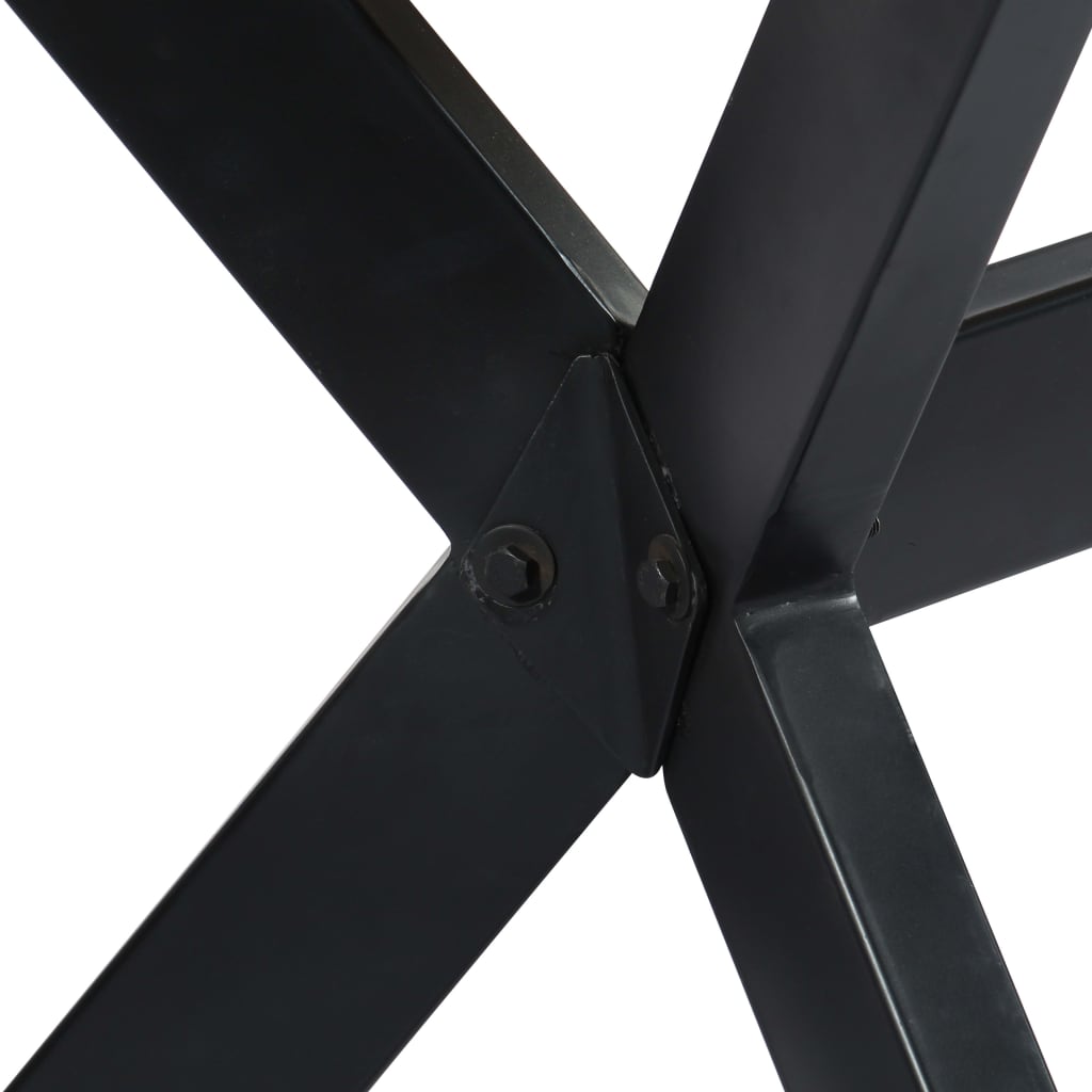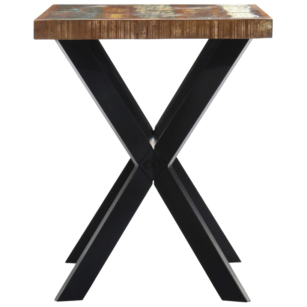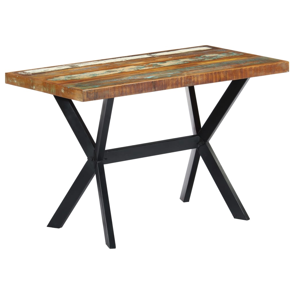 De eettafel is gemaakt van massief gerecycled hout dat afkomstig is van balken, vloeren en steunbalken van oude gebouwen die zijn gesloopt. Het kan dus bestaan uit verschillende houtsoorten, zoals grenen, teak, beuk, eik, ceder, mango en acacia. Dit betekent dat het teruggewonnen hout de kenmerken van deze verschillende houtsoorten behoudt. Gerecycled hout is al verouderd, verweerd en gedroogd, dus het krimpt en buigt niet. De tafel is handgemaakt en elke stap van het proces wordt met de grootste zorg uitgevoerd, of het nu gaat om polijsten, schilderen of lakken. De stalen poten maken het industriële uiterlijk compleet, samen met het stalen kruisframe dat bijdraagt aan de stevige constructie.
