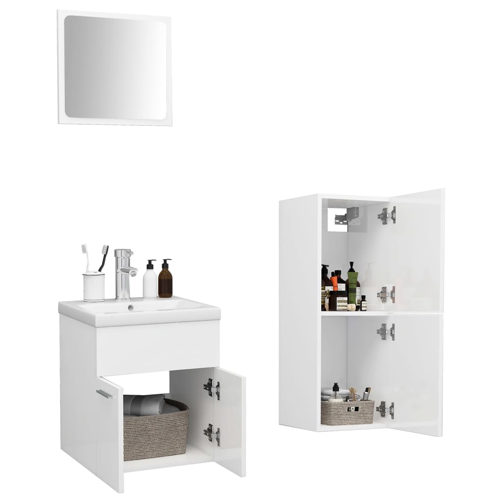 Met deze stijlvolle badkamermeubelset kan je extra opbergruimte in je badkamer creëren. Door de strakke lijnen en het strakke ontwerp past hij perfect in je badkamer.