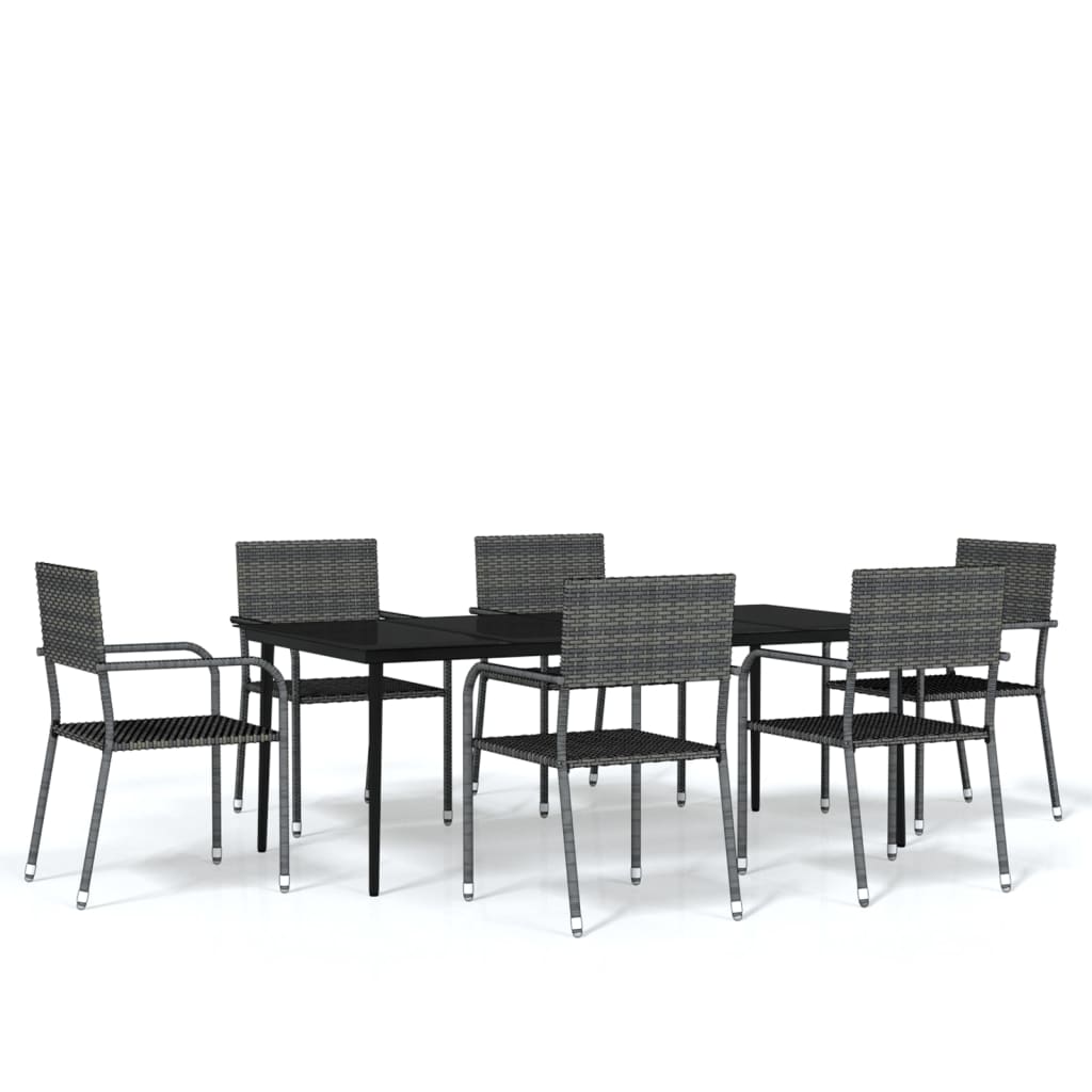De praktische buiteneetset heeft een stalen frame waardoor hij sterk en stevig is. De tuinstoelen zijn gemaakt van waterbestendig en onderhoudsvrij PE-rattan, waardoor ze perfect zijn voor buitengebruik. Deze tuinstoelen zijn lichtgewicht en kunnen gestapeld worden om ruimte te besparen wanneer ze niet gebruikt worden. Het gladde, glazen tafelblad is gemakkelijk schoon te maken met een vochtige doek en is perfect voor het plaatsen van maaltijden, drankjes en decoratieve objecten.