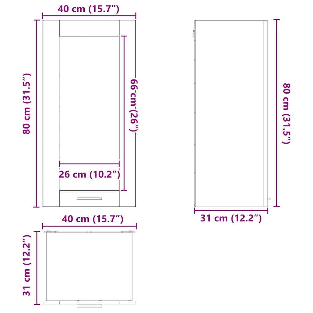 - Algemene afmetingen: 40 x 31 x 80 cm (L x B x H)