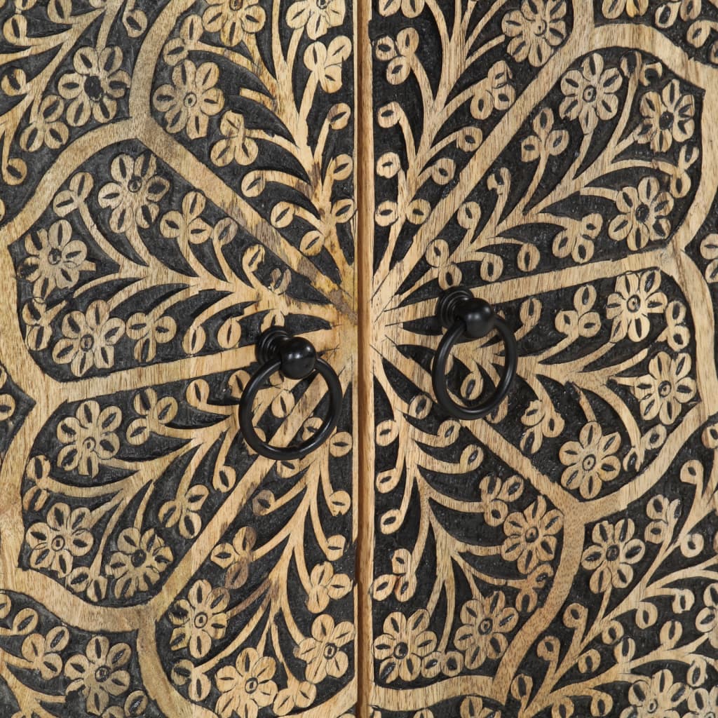 - Massief mangohout: massief mangohout is een sterk, tropisch hardhout waar stevige meubelen van gemaakt worden. De prachtige houtnerven maken elk meubelstuk net even anders dan de rest. De kast is gemaakt van massief mangohout en is duurzaam en stabiel.