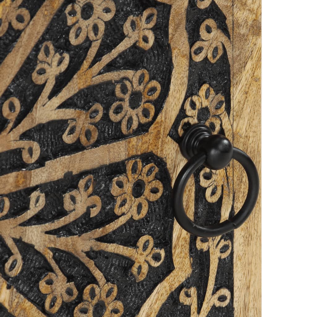 - Massief mangohout: massief mangohout is een sterk, tropisch hardhout waar stevige meubelen van gemaakt worden. De prachtige houtnerven maken elk meubelstuk net even anders dan de rest. De kast is gemaakt van massief mangohout en is duurzaam en stabiel.