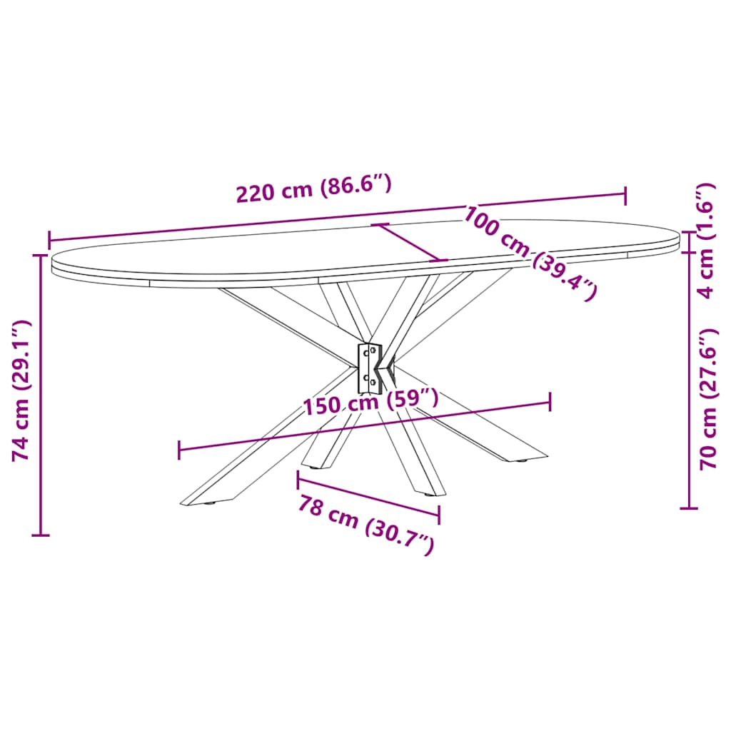 - Grote tafel: Deze tafel meet 220 x 100 cm en biedt voldoende zitruimte en is het middelpunt van uw eethoek.