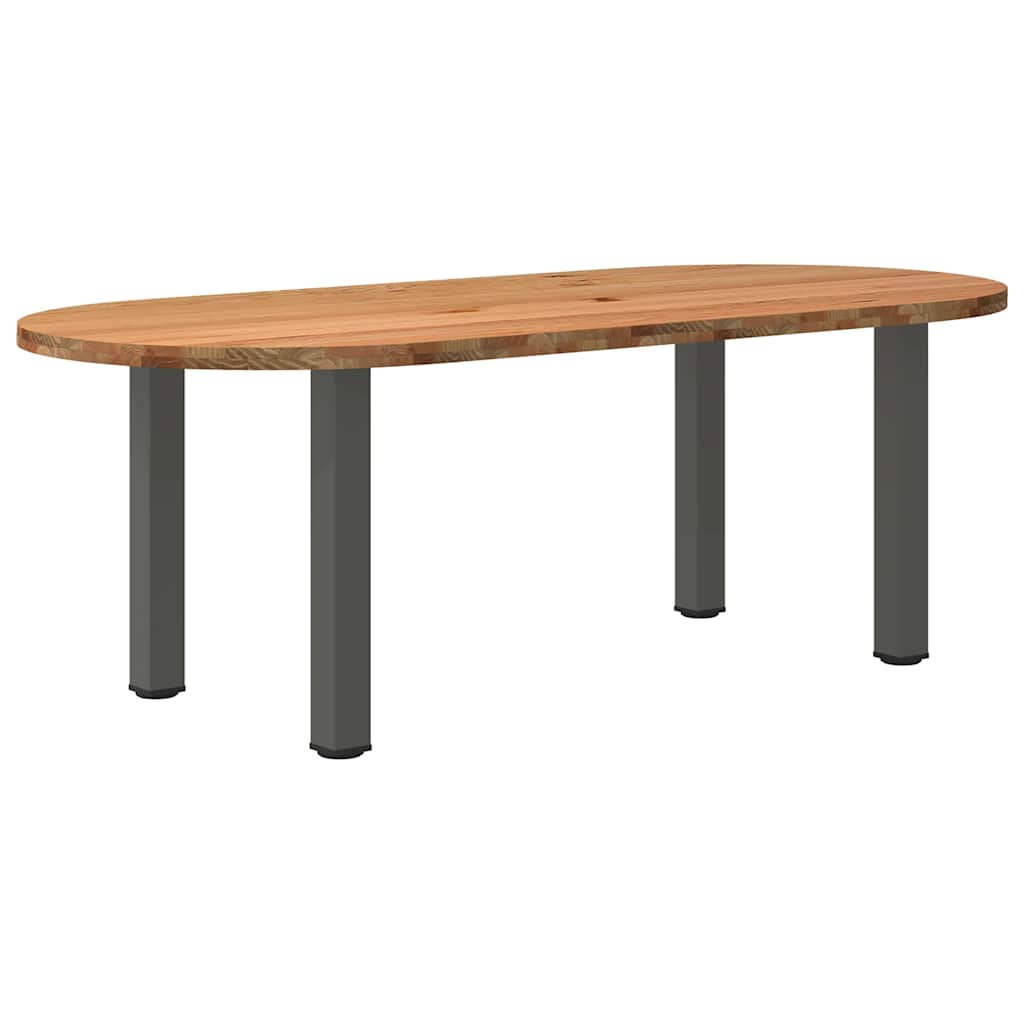 - Het tafelblad heeft een dikte van 4 cm langs de randen voor een robuuste uitstraling, en een dikte van 2 cm in het midden om het houtverbruik en het totale gewicht te verminderen.