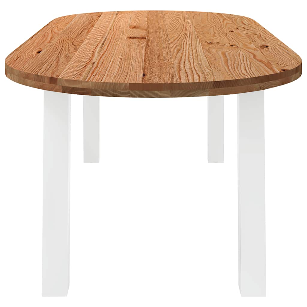 - Het tafelblad heeft een dikte van 4 cm langs de randen voor een robuuste uitstraling, en een dikte van 2 cm in het midden om het houtverbruik en het totale gewicht te verminderen.
