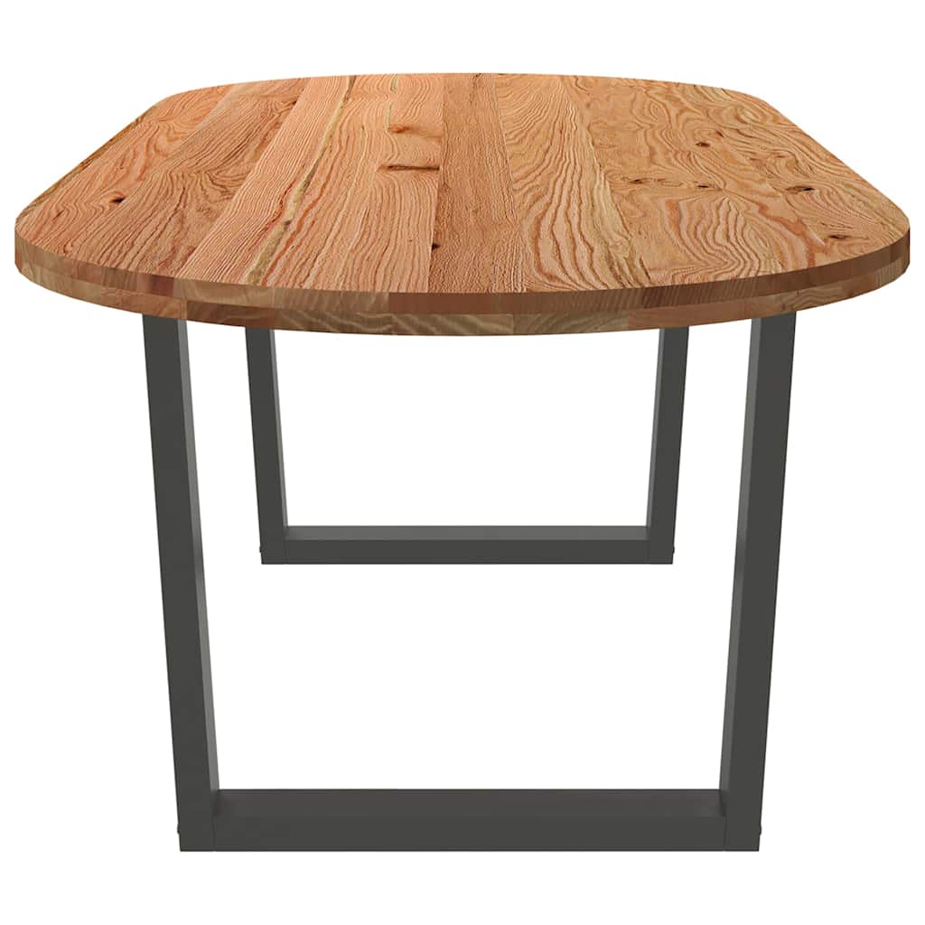 - Het tafelblad heeft een dikte van 4 cm langs de randen voor een robuuste uitstraling, en een dikte van 2 cm in het midden om het houtverbruik en het totale gewicht te verminderen.