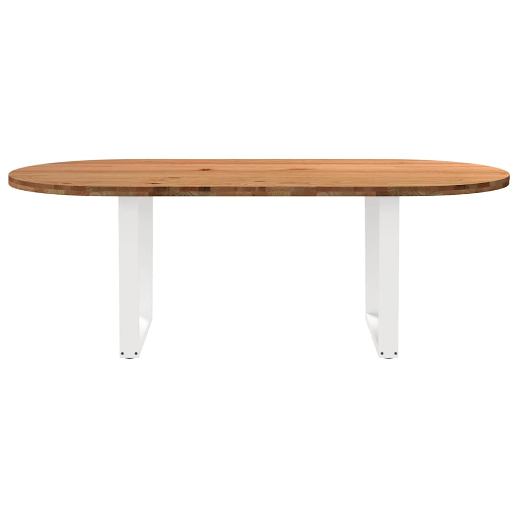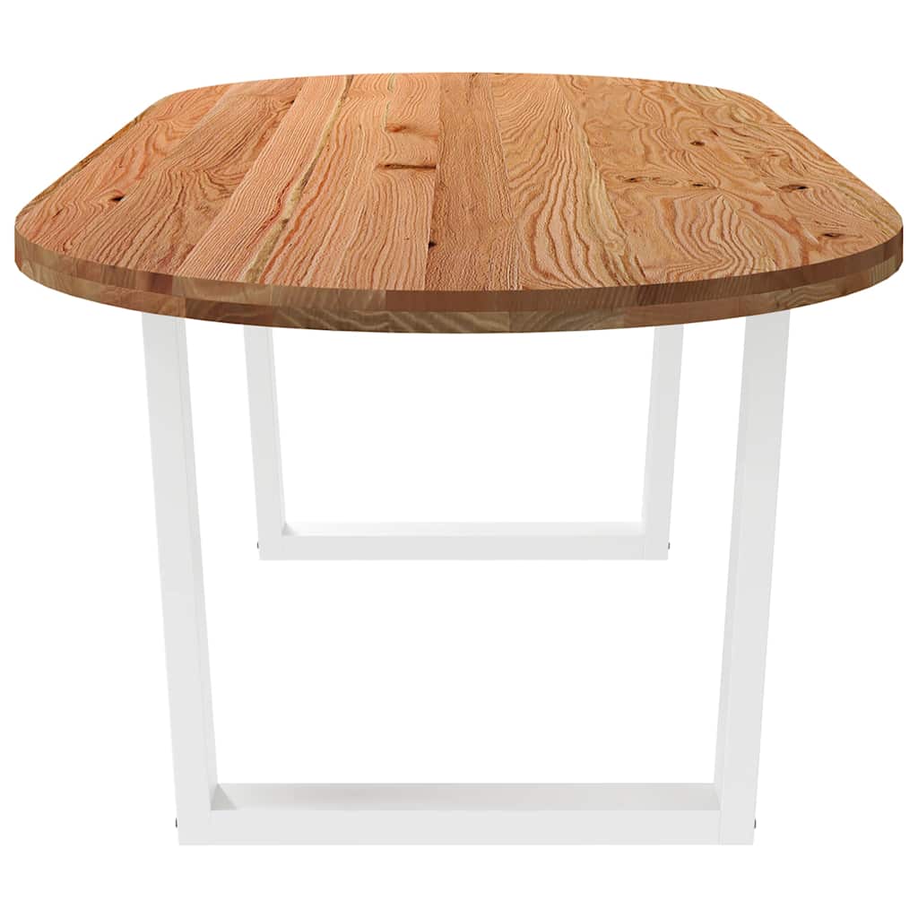 - Het tafelblad heeft een dikte van 4 cm langs de randen voor een robuuste uitstraling, en een dikte van 2 cm in het midden om het houtverbruik en het totale gewicht te verminderen.