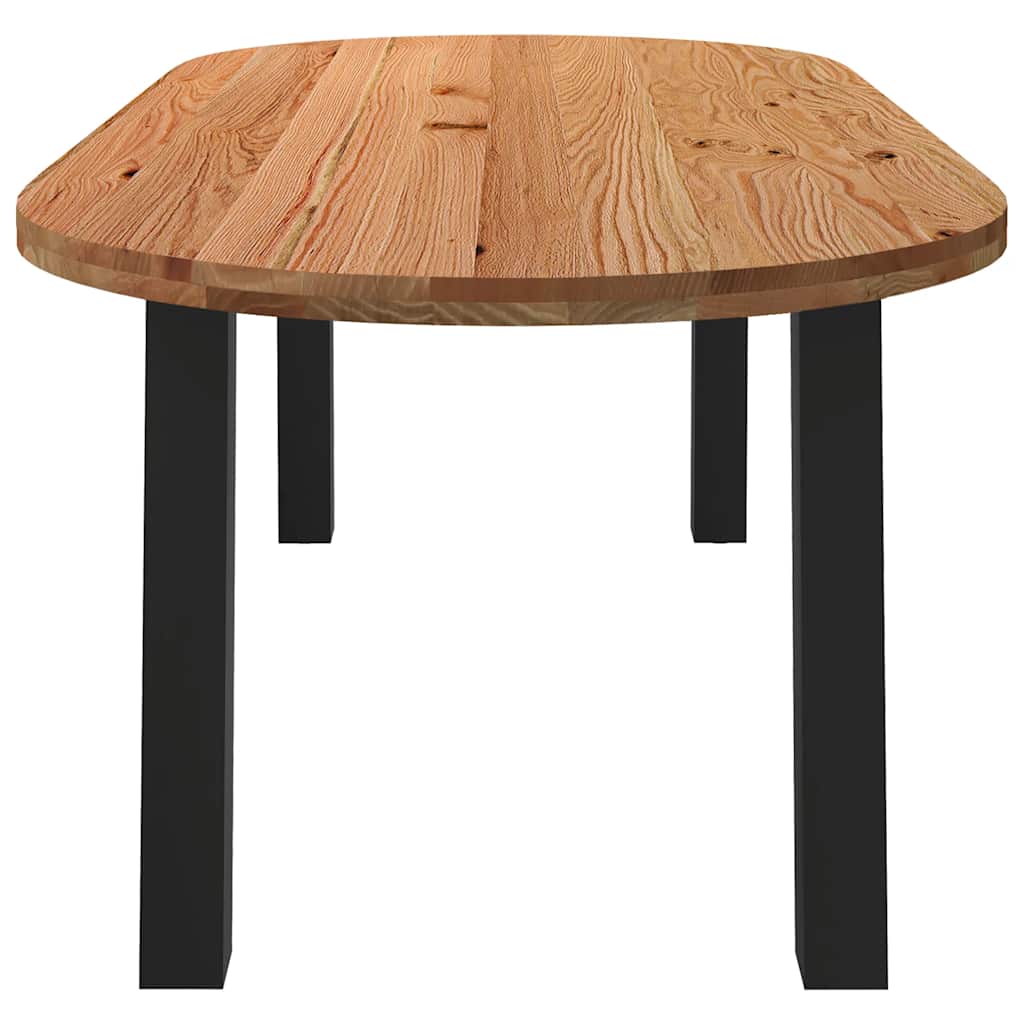 - Het tafelblad heeft een dikte van 4 cm langs de randen voor een robuuste uitstraling, en een dikte van 2 cm in het midden om het houtverbruik en het totale gewicht te verminderen.