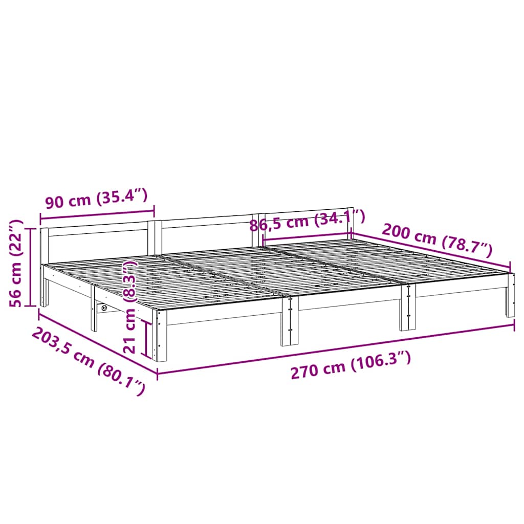 - Ruim comfort: dit familiebed biedt een ruim slaapgedeelte van 270x200 cm, waardoor er voldoende ruimte is voor het hele gezin om comfortabel te slapen zonder zich krap te voelen. Daarnaast kun je meer eenpersoonsbedden toevoegen om een grotere slaapruimte te creëren dankzij de voorgeboorde gaten in het bedframe.
