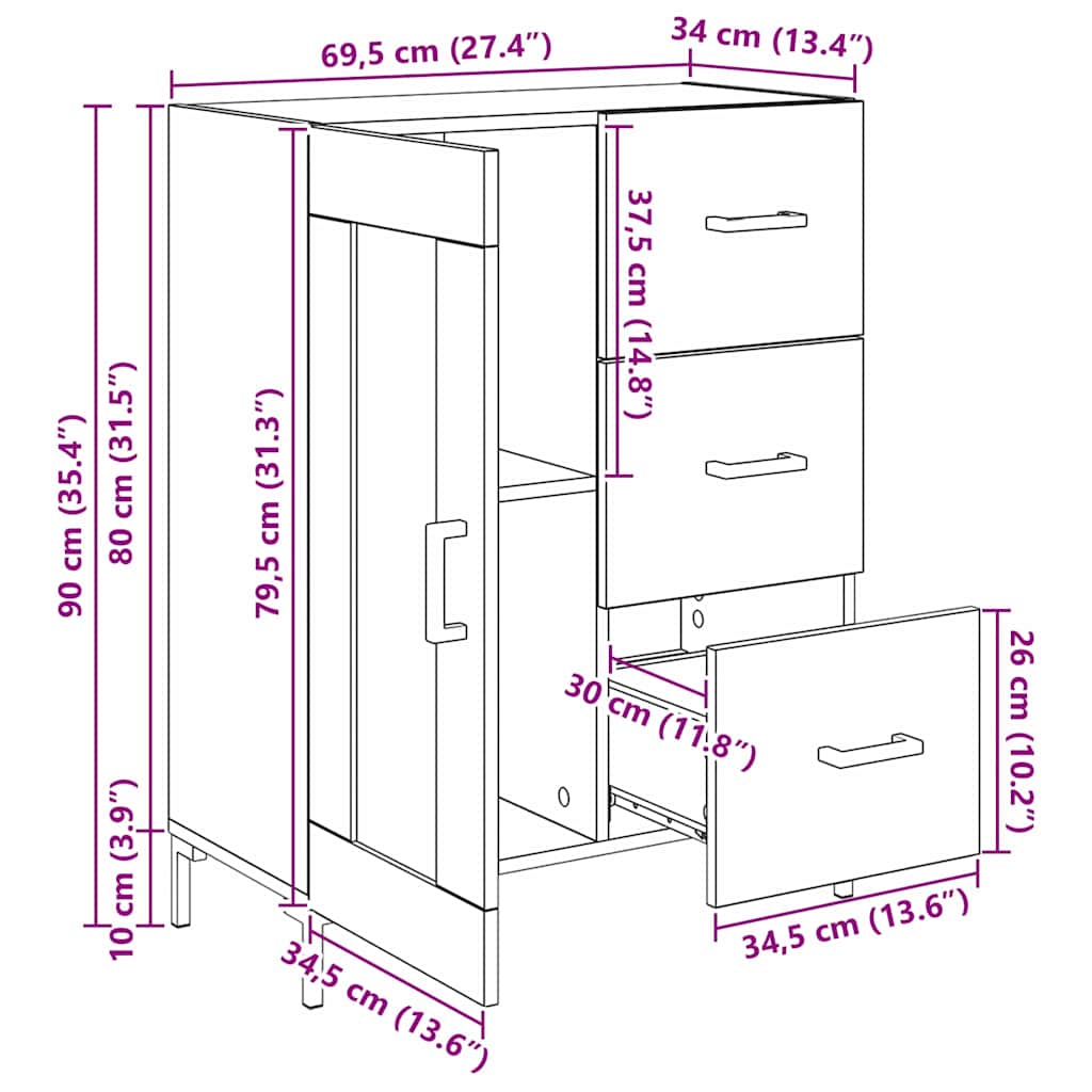 - Ruime Indeling Met afmetingen van 69,5 x 34 x 90 cm biedt het veel opbergruimte zonder de kamer te overweldigen. Het biedt slimme oplossingen voor al je opbergbehoeften en helpt je om je ruimte optimaal te benutten.