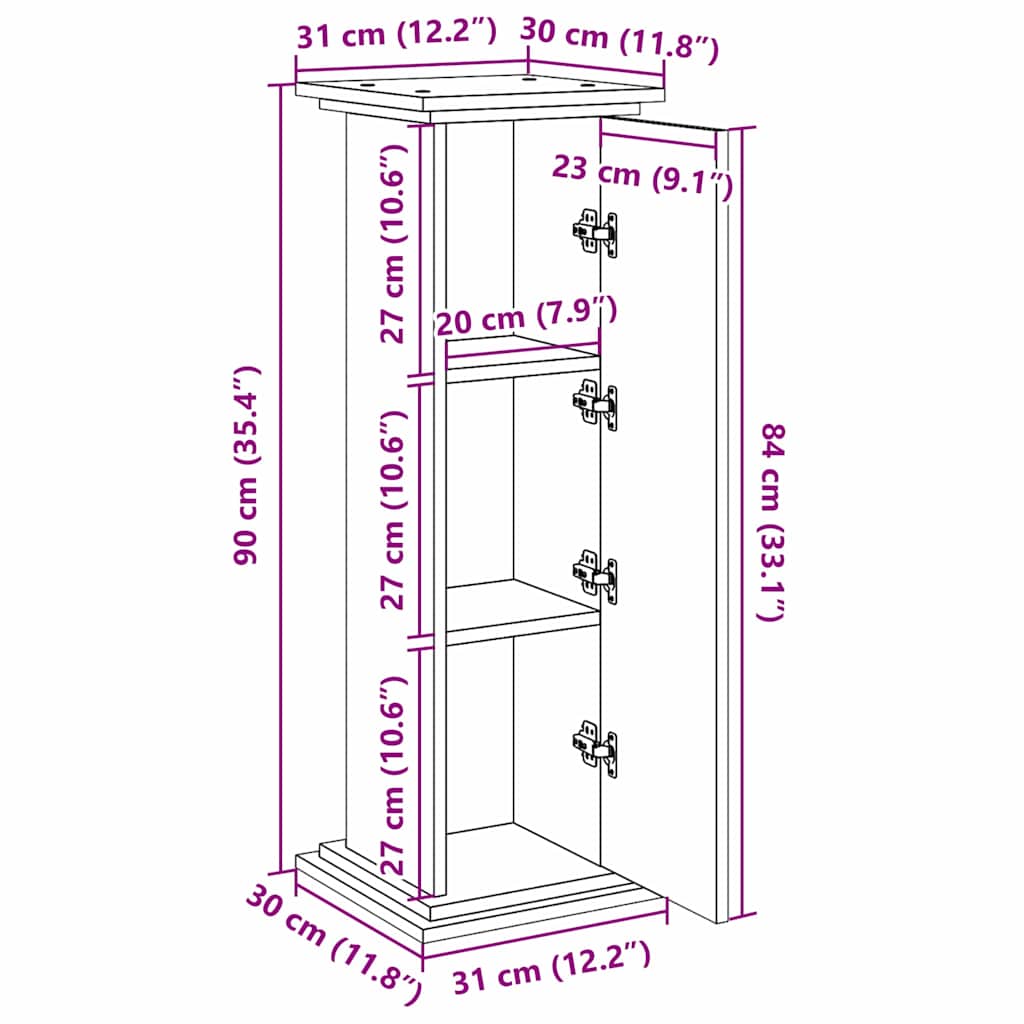 - Algemene afmetingen: 31 x 30 x 90 cm (L x B x H)