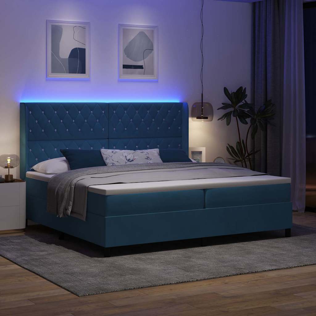 Dit fluwelen boxspringbed met matras en LED is een geweldige combinatie van modern design en praktische functie, ideaal voor iedereen die zowel comfort als stijl in zijn slaapkamer wil. Met zijn strakke, rechthoekige vorm heeft het een minimalistische uitstraling met schone lijnen en een uitnodigende vibe. Dit bed biedt een luxe slaapervaring dankzij de zachte matras en de chique fluwelen look. Of je nu lekker aan het chillen bent of een dutje doet, dit bed maakt je slaapkamer echt prachtig.