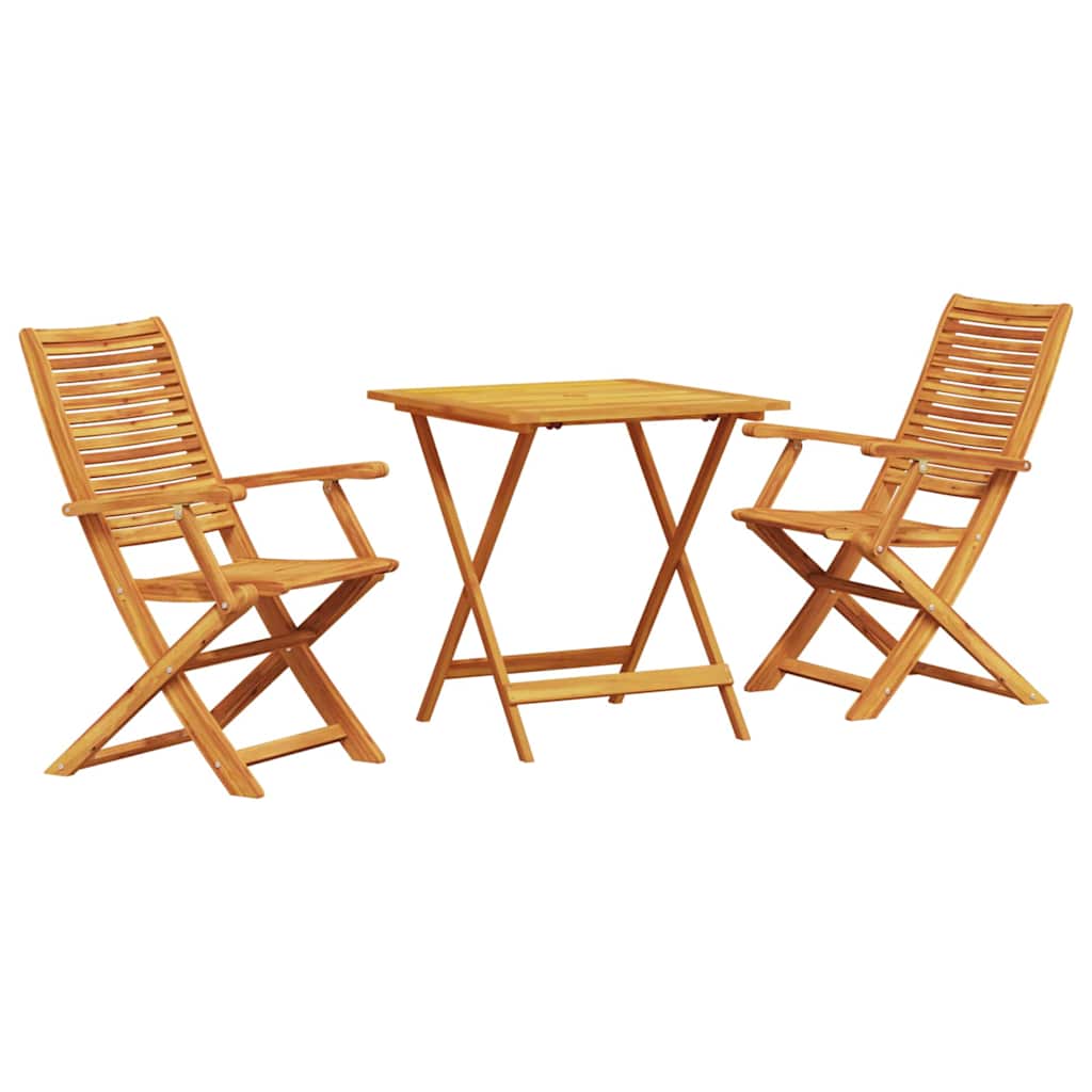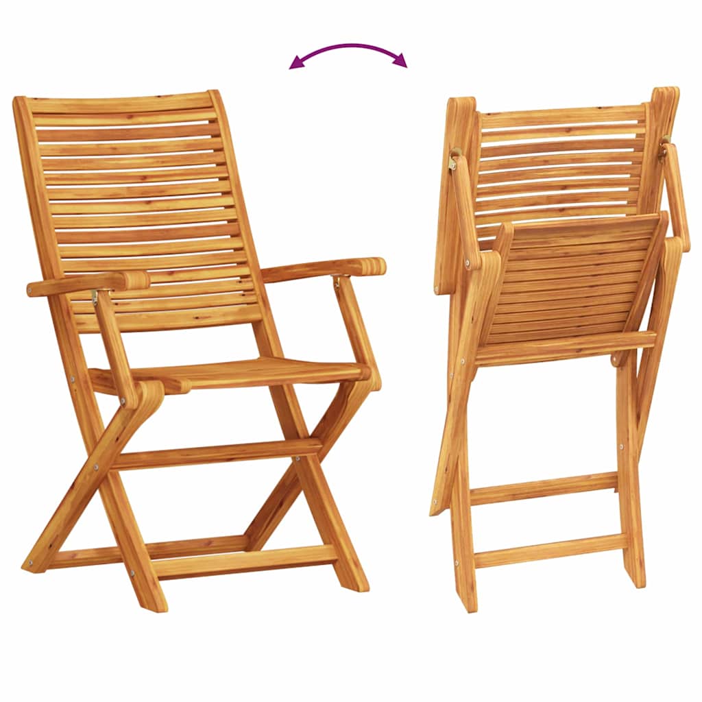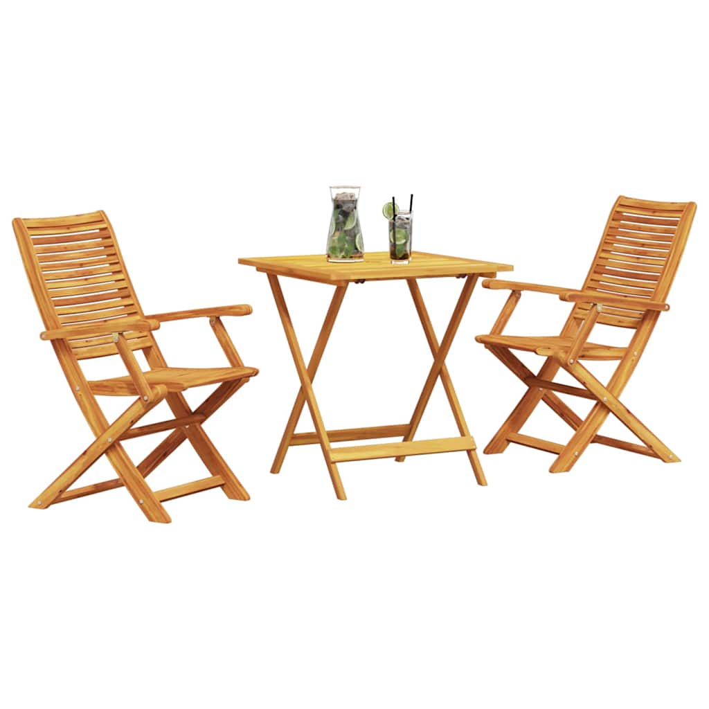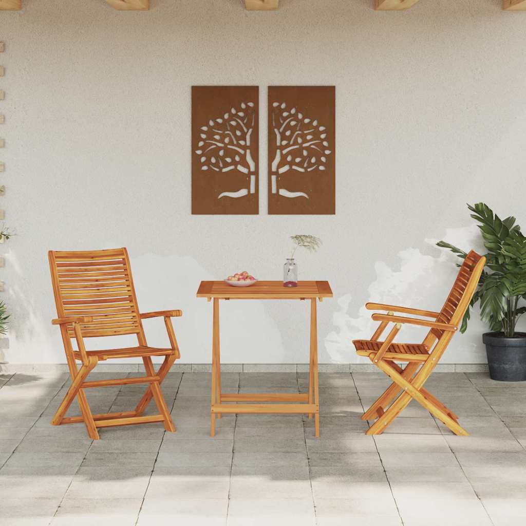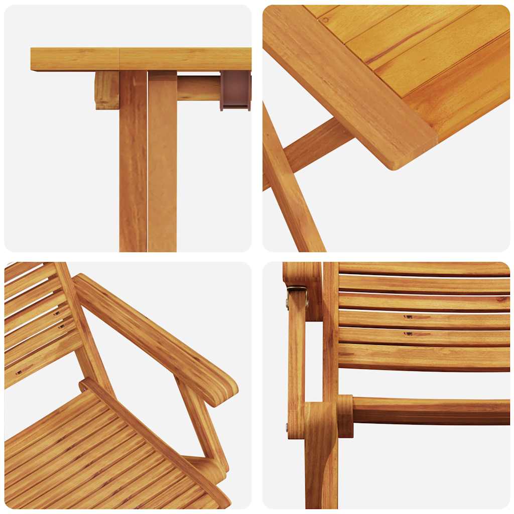 - Massief acaciahout: Deze rustieke opvouwbare bistroset is gemaakt van massief acaciahout en heeft een organische uitstraling. Het is super duurzaam, perfect voor buitengebruik en kan goed tegen dagelijks gebruik en slecht weer. De geoliede afwerking maakt het niet alleen mooier, maar helpt ook het hout te beschermen tegen vocht.
