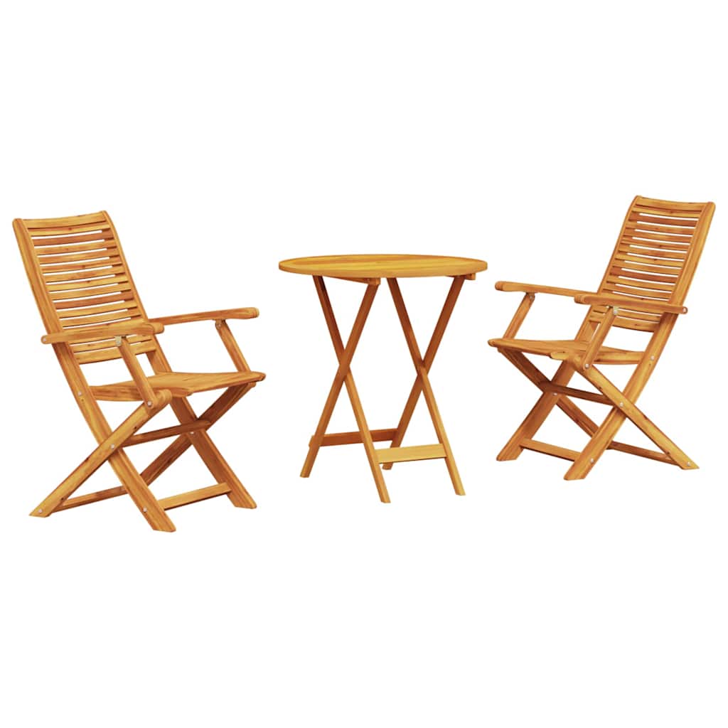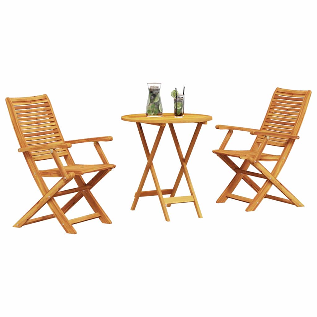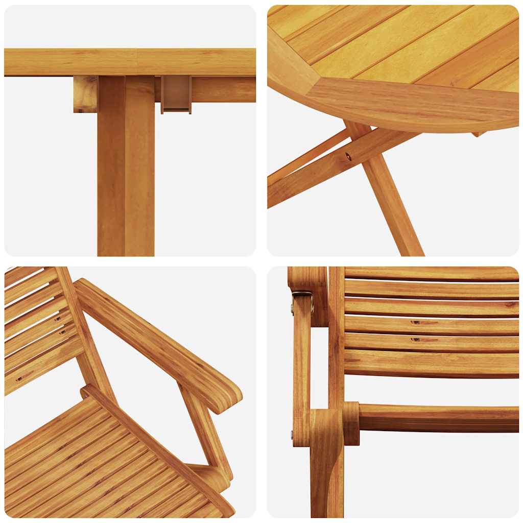 - Massief acaciahout: Deze rustieke opvouwbare bistroset is gemaakt van massief acaciahout en heeft een organische uitstraling. Het is super duurzaam, perfect voor buitengebruik en kan goed tegen dagelijks gebruik en slecht weer. De geoliede afwerking maakt het niet alleen mooier, maar helpt ook het hout te beschermen tegen vocht.