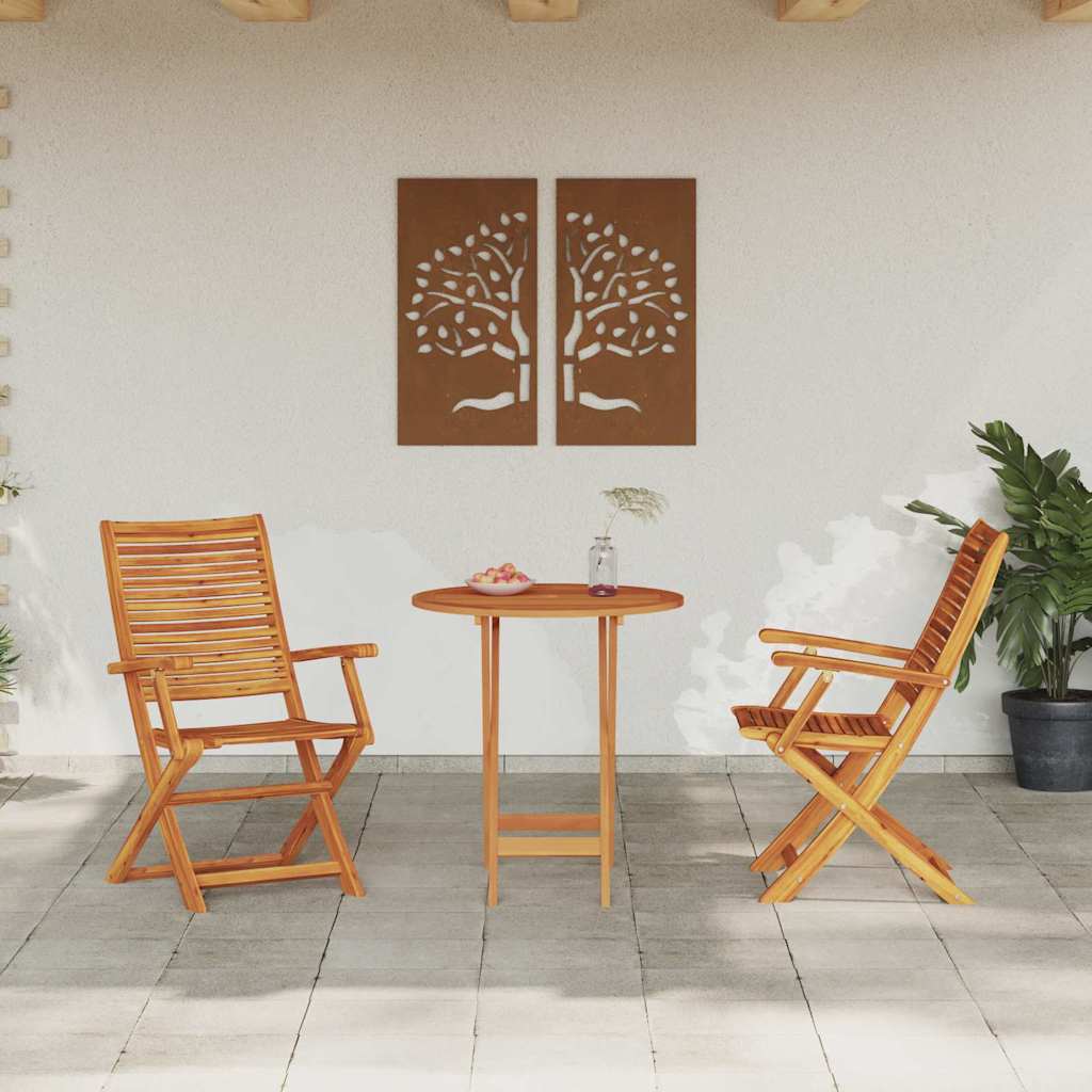 De rustieke opvouwbare bistroset is een geweldige combinatie van stijl en functionaliteit, perfect om je tuin of terras op te vrolijken. Met zijn charmante uitstraling voegt deze set een mooi tintje toe aan buitenruimtes. Dankzij het opvouwbare ontwerp is hij makkelijk op te bergen en te verplaatsen, ideaal voor kleinere buitenruimtes of als je bij vrienden gaat zitten. Gemaakt van massief acaciahout, ziet het er sterk uit en is perfect voor de zomer. En met de parasolopening heb je precies wat schaduw nodig op zonnige dagen, wat het fijn maakt voor buitenbrunches of diner.