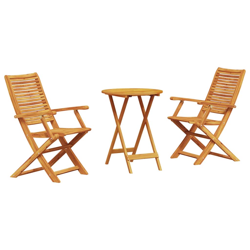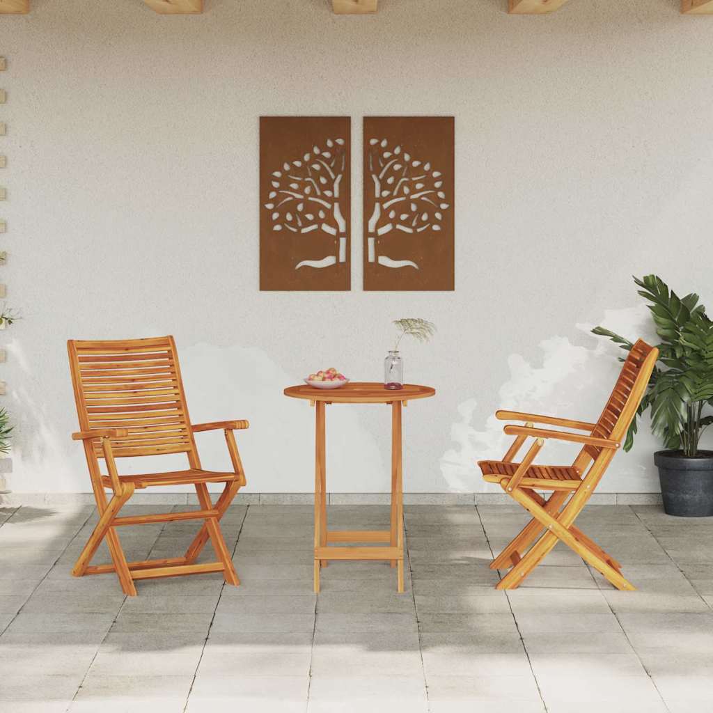 - Massief acaciahout: Deze rustieke opvouwbare bistroset is gemaakt van massief acaciahout en heeft een organische uitstraling. Het is super duurzaam, perfect voor buitengebruik en kan goed tegen dagelijks gebruik en slecht weer. De geoliede afwerking maakt het niet alleen mooier, maar helpt ook het hout te beschermen tegen vocht.