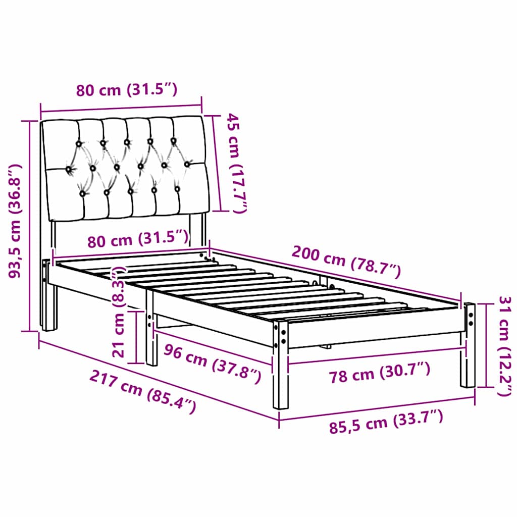 - Algemene afmetingen: 85,5 x 217 x 93,5 cm (B x L x H)