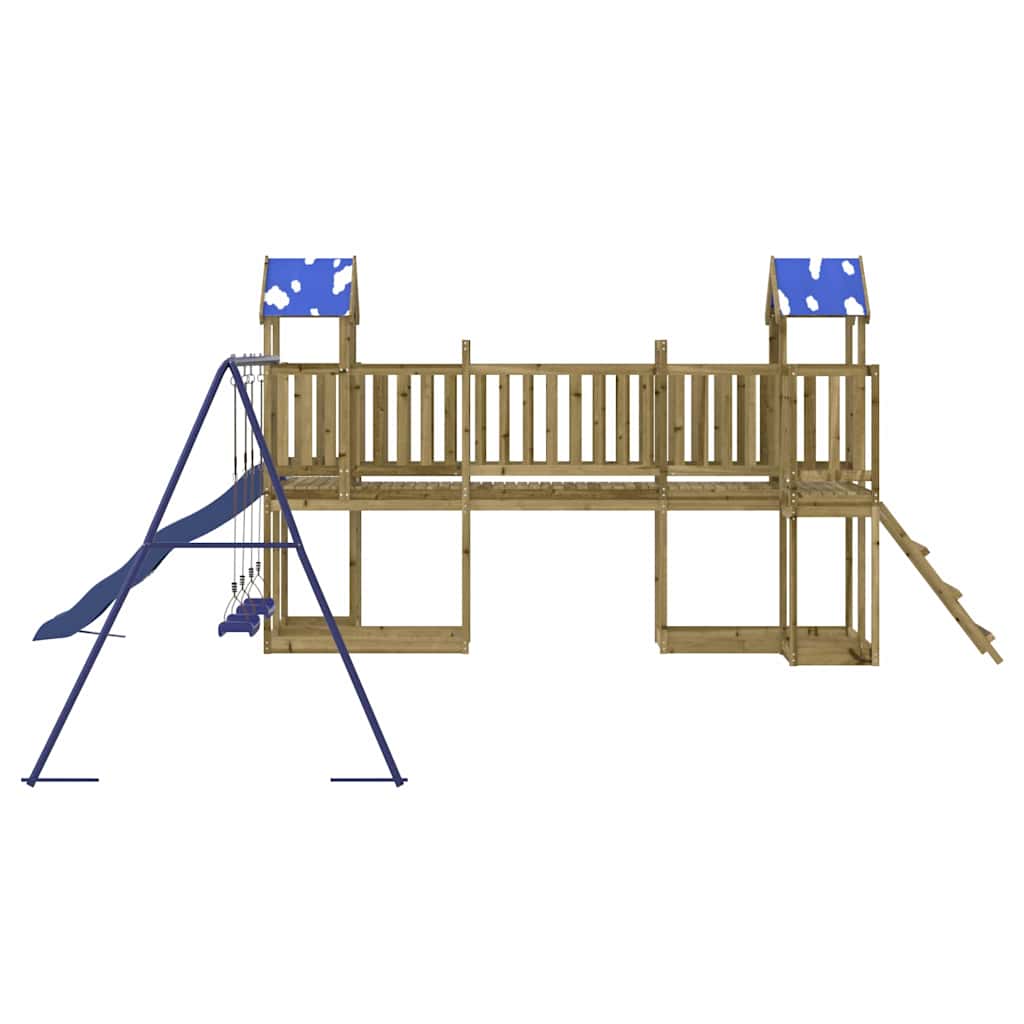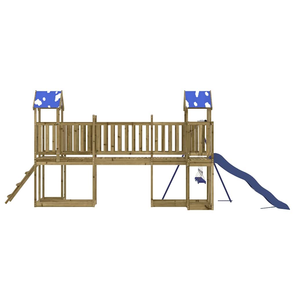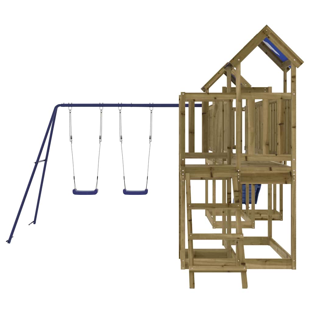 - Duurzaam materiaal: dit speelhuis is gemaakt van onder vacuüm geïmpregneerd grenenhout. Massief grenenhout staat bekend om zijn kracht en duurzaamheid. De rechte nerven en opvallende noesten dragen bij aan de rustieke charme. Het hout is geïmpregneerd met een conserveringsmiddel en heeft een behandeling met autoclaven ondergaan, waardoor de weerstand tegen rot en verwering is verbeterd.