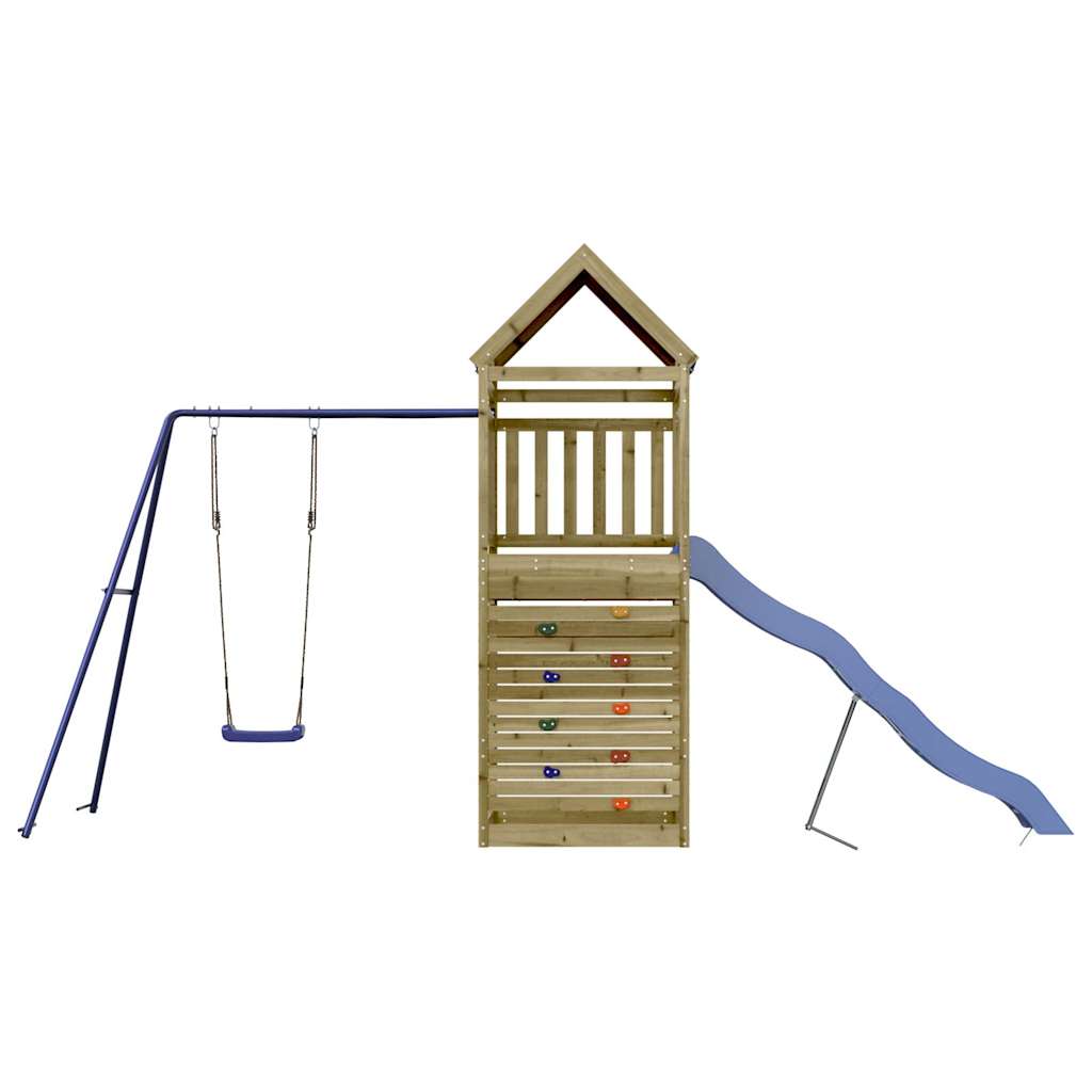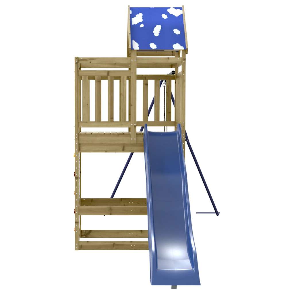 - Duurzaam materiaal: dit speelhuis is gemaakt van onder vacuüm geïmpregneerd grenenhout. Massief grenenhout staat bekend om zijn kracht en duurzaamheid. De rechte nerven en opvallende noesten dragen bij aan de rustieke charme. Het hout is geïmpregneerd met een conserveringsmiddel en heeft een behandeling met autoclaven ondergaan, waardoor de weerstand tegen rot en verwering is verbeterd.