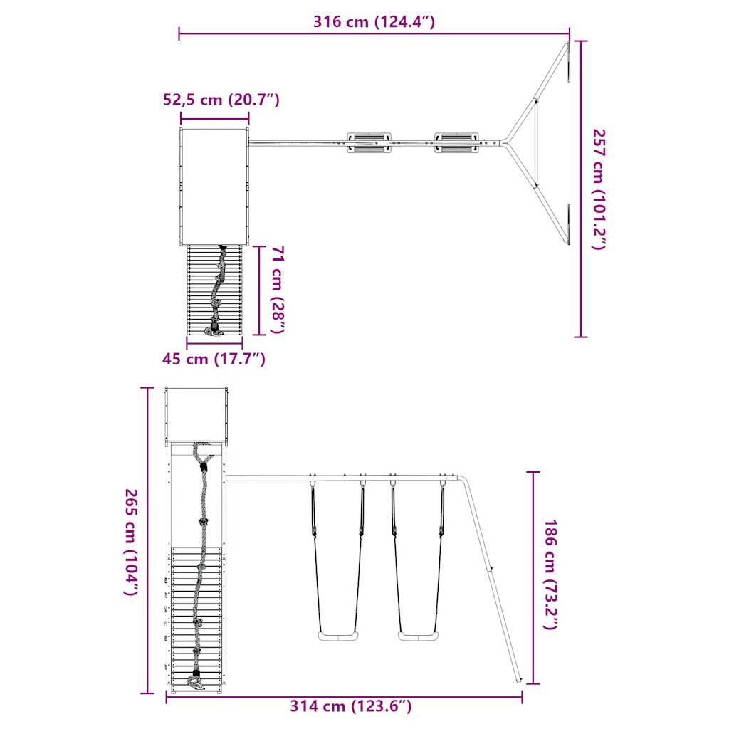 - Multi-activiteitencentra: het speeltoestel heeft een 118 cm hoog platform en valt op door zijn klimwand, 2 schommels, een klimmuur en een zandbak. Je kleintjes kunnen ook hun vriendjes uitnodigen om mee te doen.