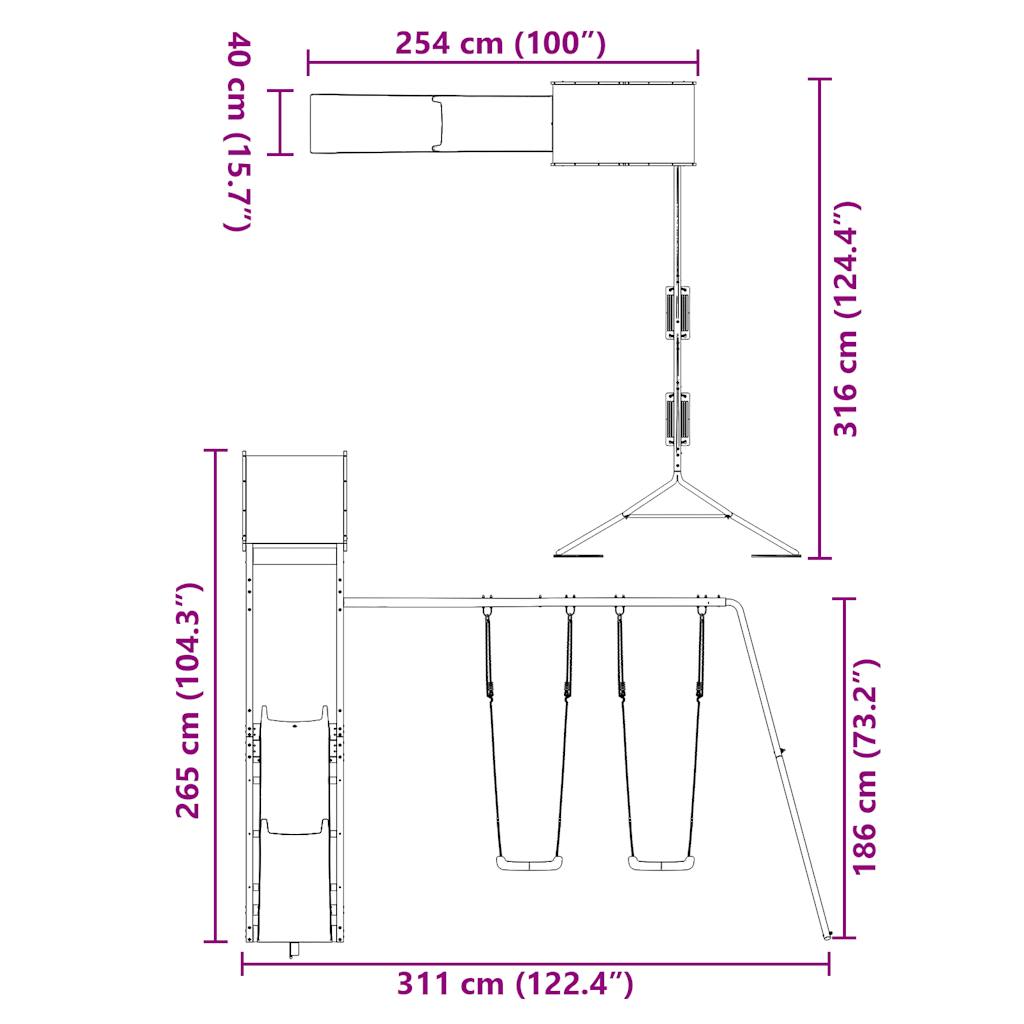 - Multi-activiteitencentra: het speeltoestel heeft een 118 cm hoog platform en valt op door zijn golvende glijbaan, 2 schommels en een zandbak. Je kleintjes kunnen ook hun vriendjes uitnodigen om mee te doen.