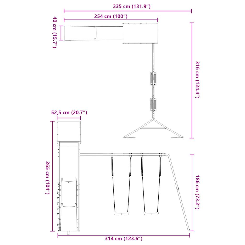 - Multi-activiteitencentra: het speeltoestel heeft een 118 cm hoog platform en valt op door zijn golvende glijbaan, 2 schommels, een klimmuur en een zandbak. Je kleintjes kunnen ook hun vriendjes uitnodigen om mee te doen.