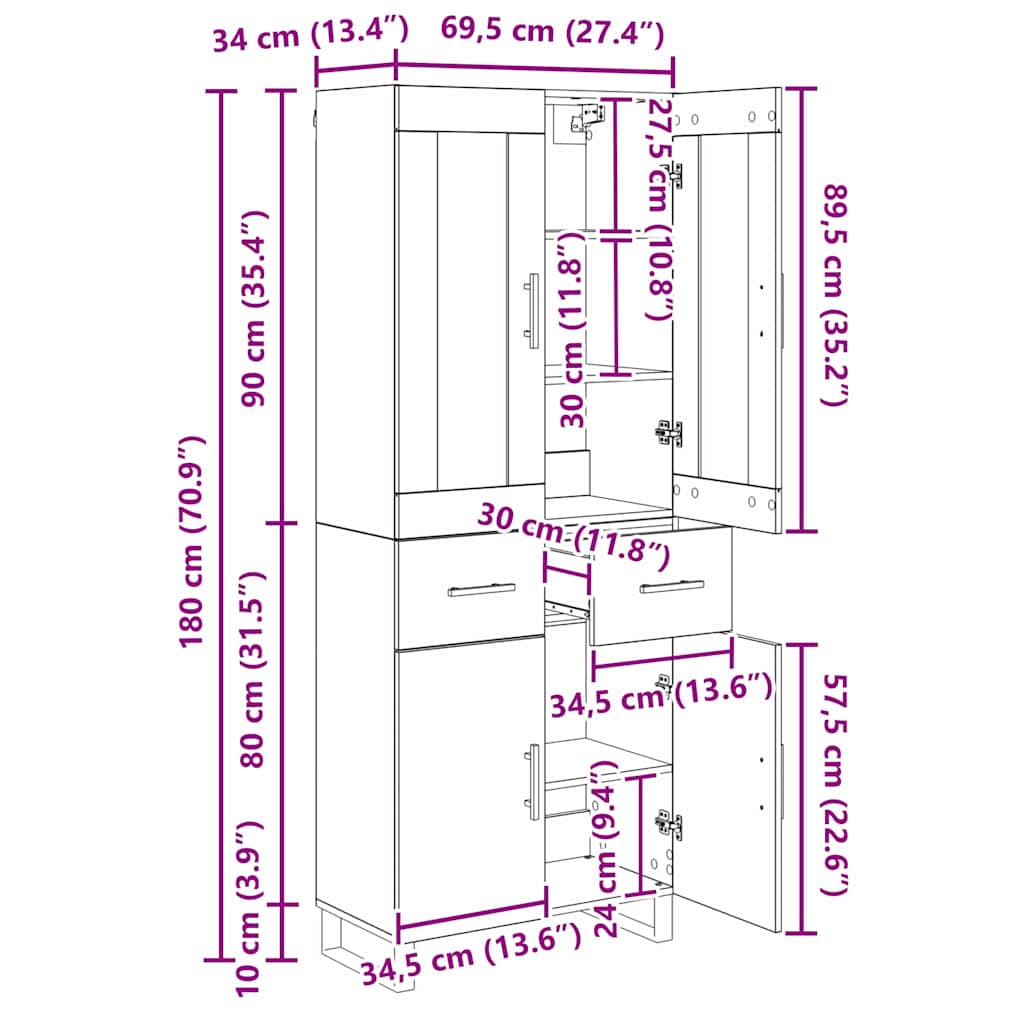 - Algemene afmetingen: 69,5 x 34 x 180 cm (L x B x H)