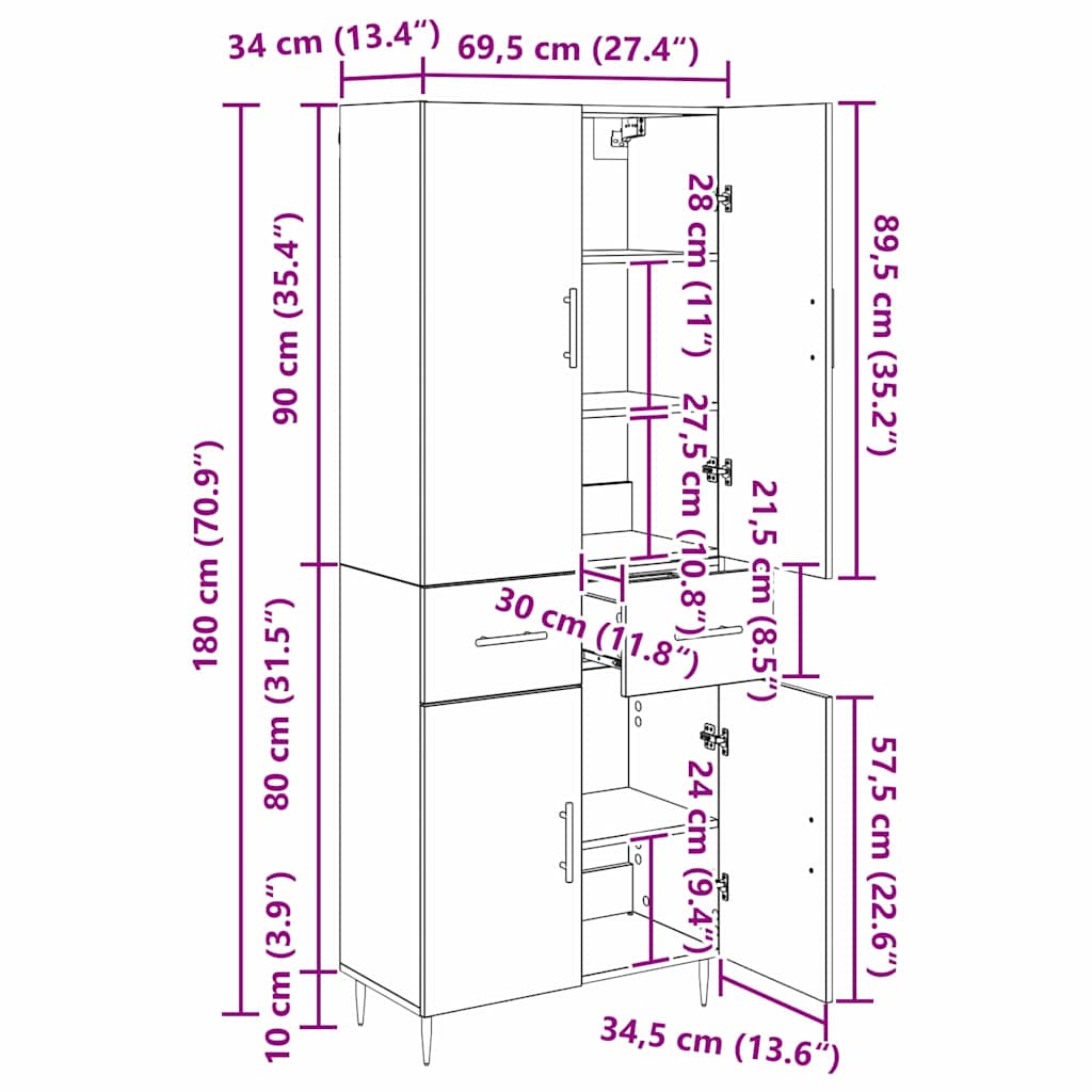 - Algemene afmetingen: 69,5 x 34 x 180 cm (L x B x H)