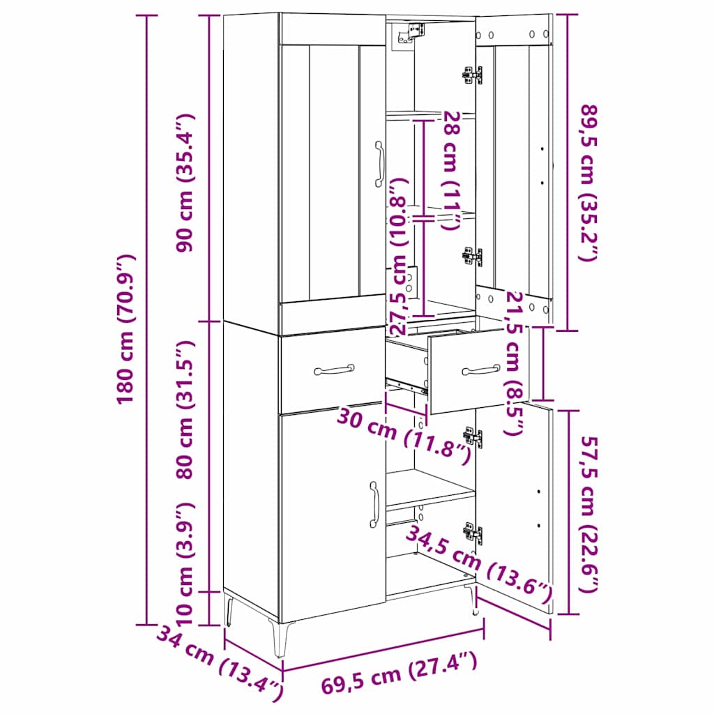 - Algemene afmetingen: 69,5 x 34 x 180 cm (L x B x H)