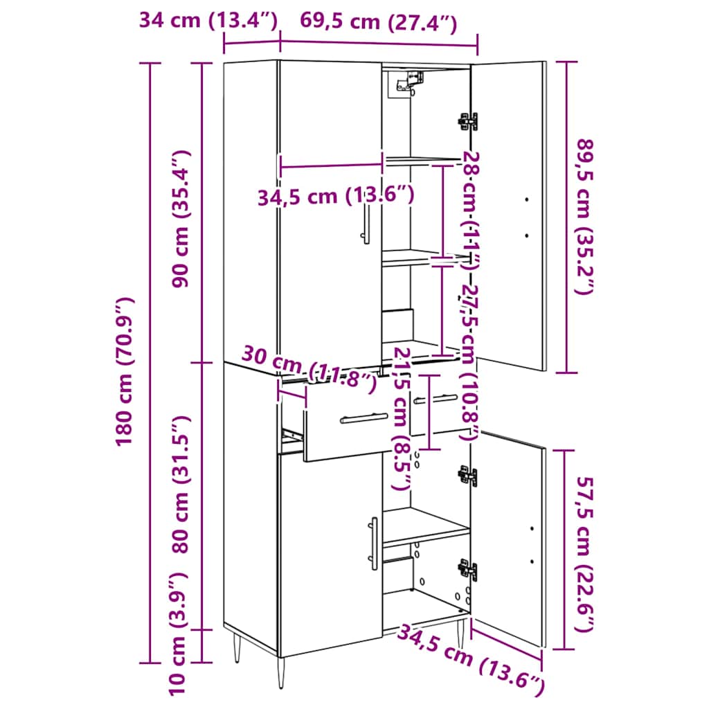 - Algemene afmetingen: 69,5 x 34 x 180 cm (L x B x H)