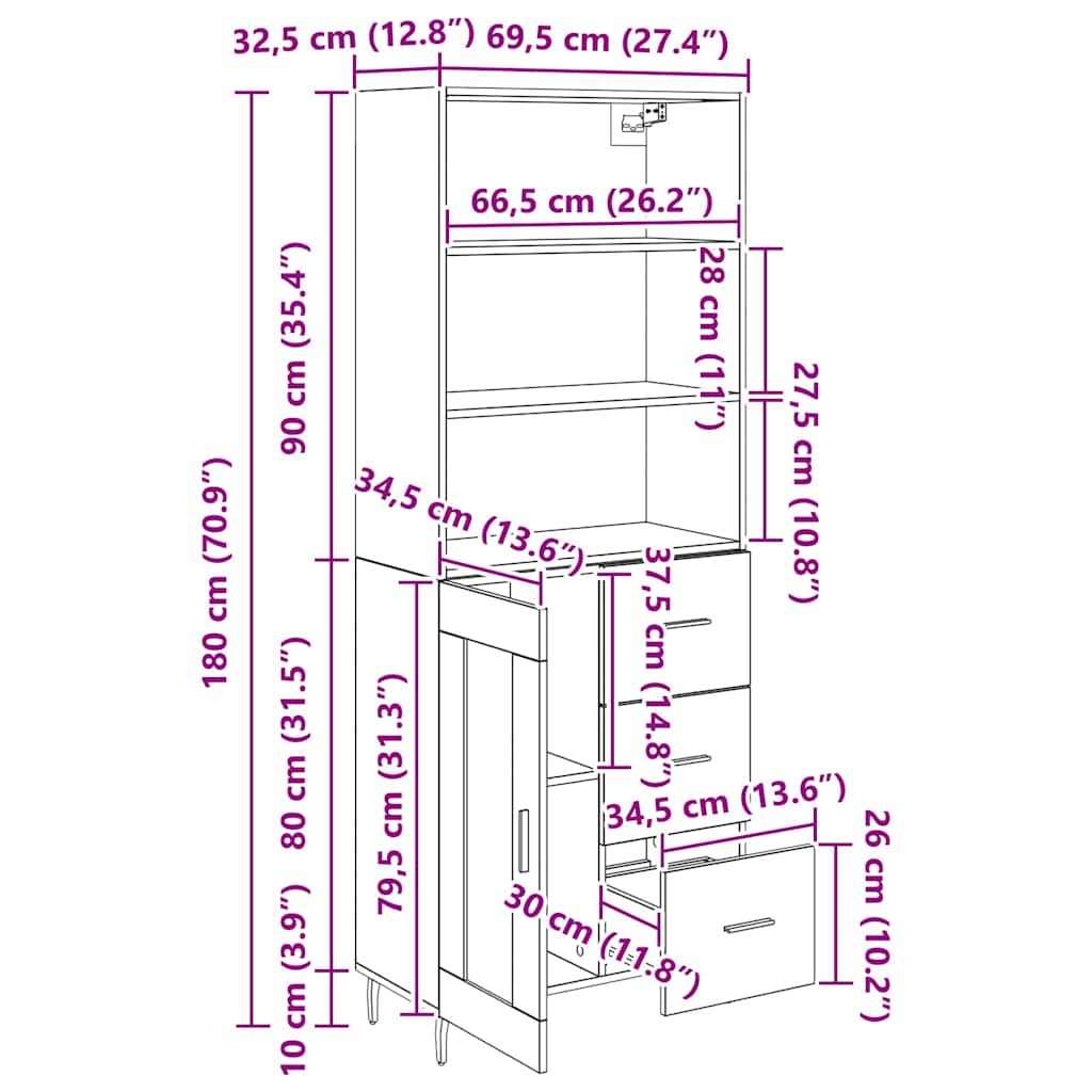 - Algemene afmetingen: 69,5 x 34 x 180 cm (L x B x H)
