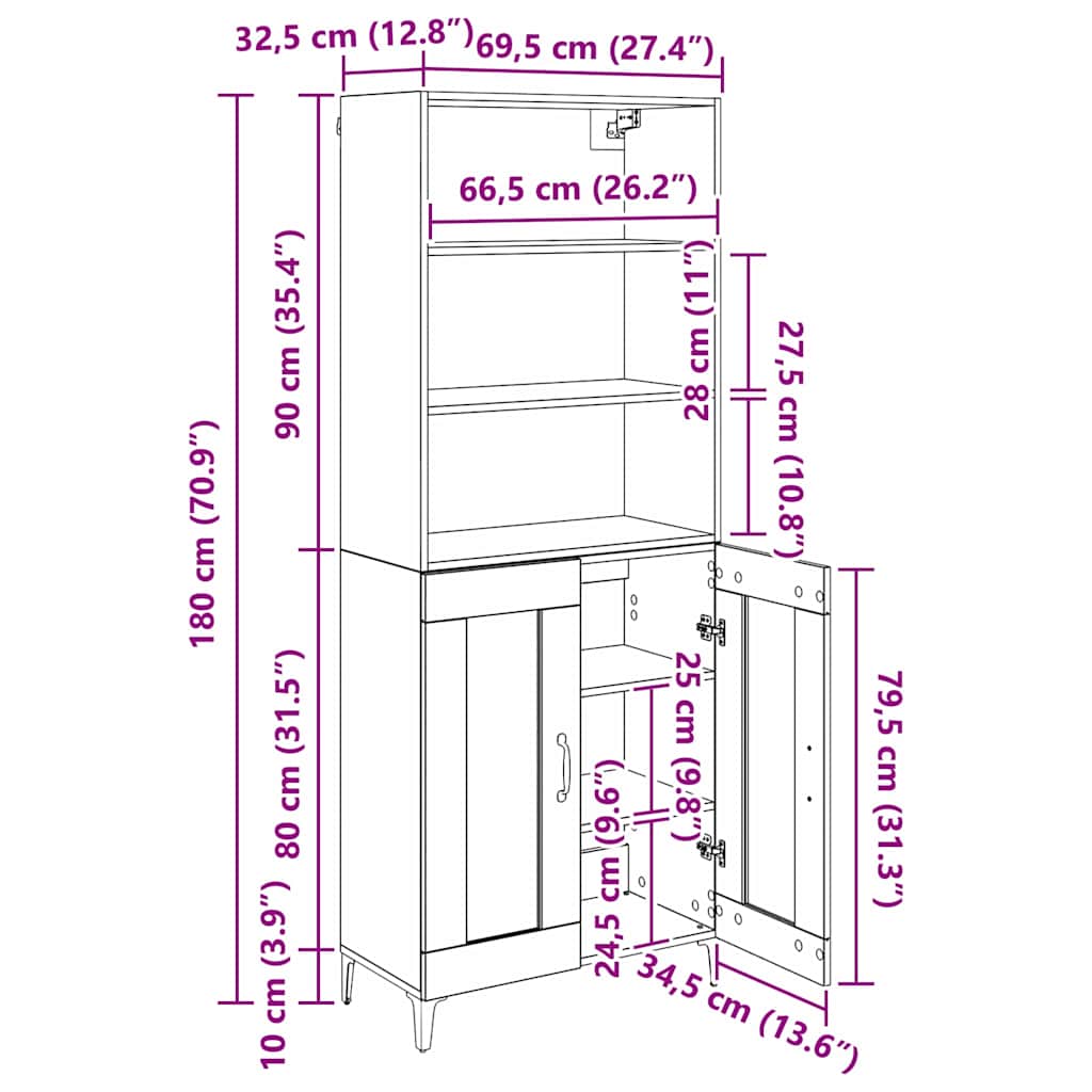 - Algemene afmetingen: 69,5 x 34 x 180 cm (L x B x H)