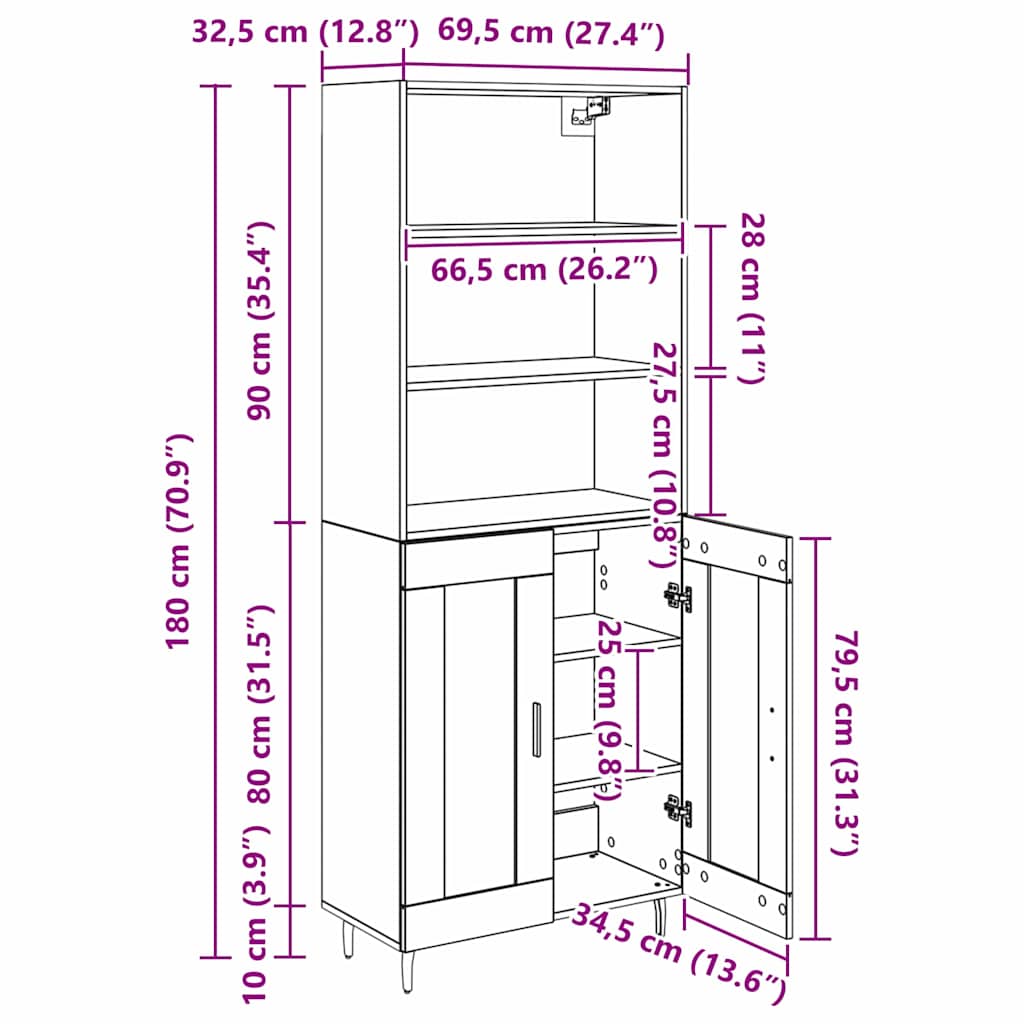 - Algemene afmetingen: 69,5 x 34 x 180 cm (L x B x H)