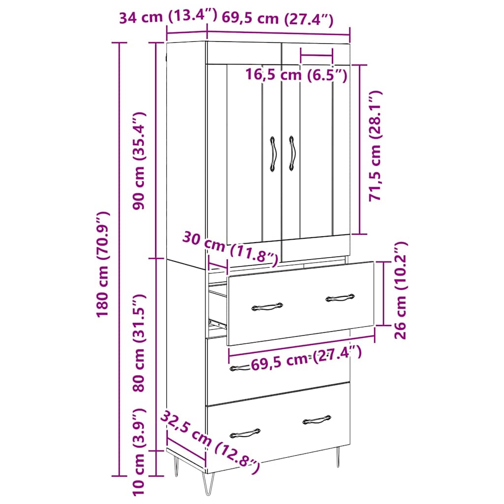 - Bewerkt houten samenstelling: Deze hoge kast is volledig van bewerkt hout en combineert kracht met een stijlvolle uitstraling. De matte afwerking zorgt ervoor dat het mooi aansluit bij verschillende decorstijlen en een nette look behoudt.