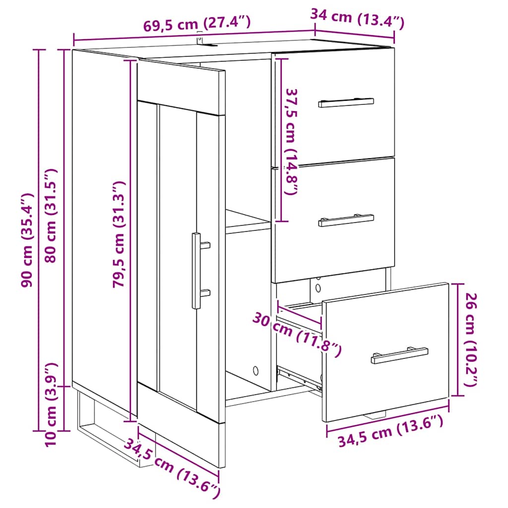 - Algemene afmetingen: 69,5 x 34 x 90 cm (L x B x H)