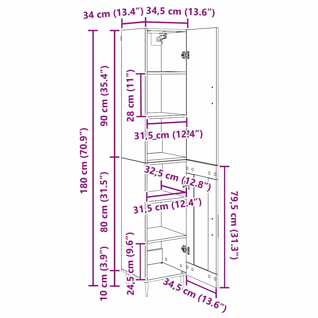 - Algemene afmetingen: 34,5 x 34 x 180 cm (B x D x H)