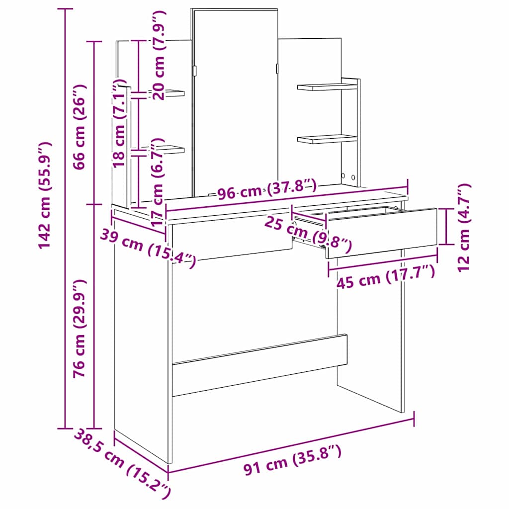 Deze moderne kaptafel verandert elke slaapkamer in een stijlvol toevluchtsoord. Met zijn gladde afwerking en strakke design is deze kaptafel perfect voor iedereen die van modern en praktisch houdt. Je krijgt een ideaal platform om al je accessoires en cosmetica te organiseren, zodat je dagelijkse routine gemakkelijker en stijlvoller wordt. Met een hoogte van 142 cm en een breedte van 96 cm, past dit elegante meubel naadloos in elke slaapkamer en biedt het zowel esthetische aantrekkingskracht als praktische opbergruimte.