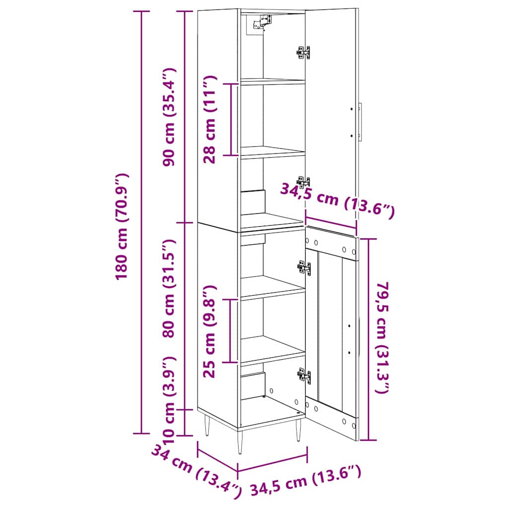 - Algemene afmetingen: 34,5 x 34 x 180 cm (B x D x H)