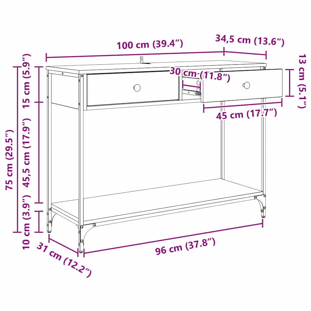 - Industrieel uiterlijk: Deze console tafel belichaamt de industriële stijl met zijn textuur, geperst houten oppervlak dat een rauwe stedelijke charme oproept. Het metalen frame en de stevige stalen poten geven elke kamer een vleugje magazijnstijl en maken het een leuke blikvanger voor moderne woonruimtes. De combinatie van metaal en geperst hout biedt een balans tussen stevigheid en moderne elegantie.