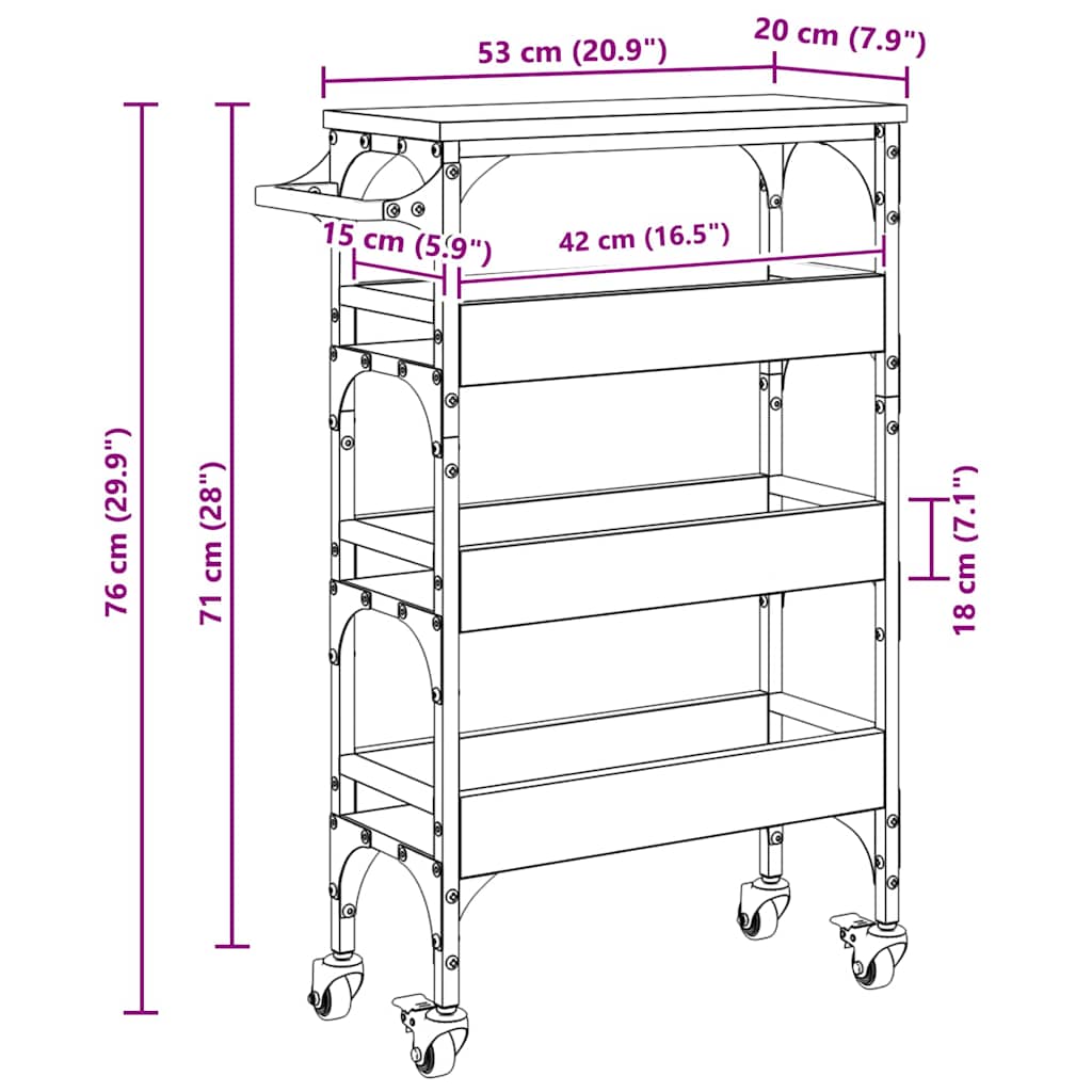 - Ruimte in gedachten Ontworpen voor kleine keukens, neemt deze trolley nauwelijks ruimte in, maar biedt hij toch veel opbergruimte. Met 53 x 20 x 76 cm is hij ideaal voor het opbergen van spullen zonder dat hij veel opvalt.