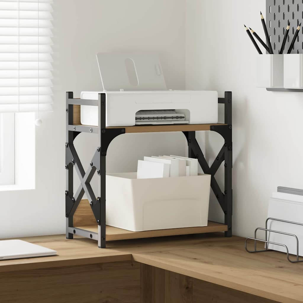 Deze printerstand met twee lagen heeft een stoere, industriële uitstraling, geïnspireerd door de ruwe look van magazijnen en lofts. Het strakke, rechthoekige design met een rustieke afwerking brengt stijl en nut samen in elke kantoorruimte. Het is perfect om je printers georganiseerd en binnen handbereik te houden, ideaal voor iedereen die een praktische en mooie werkplek wil. Gemaakt van bewerkt hout, staat het garant voor stabiliteit en ziet het er aantrekkelijk uit. Of je nu thuis werkt of een kantoor opzet, deze printerstand is een slimme keuze die je werkprocessen lekker soepel laat verlopen.