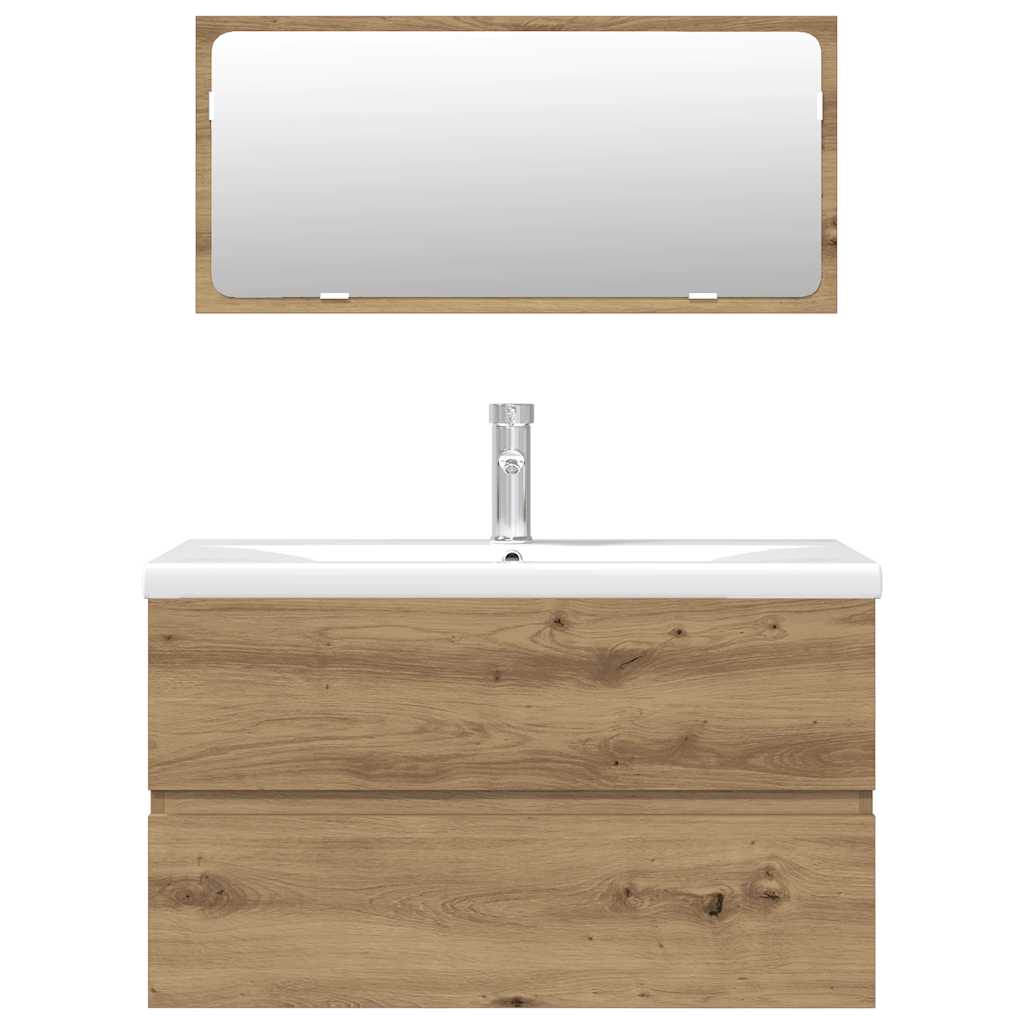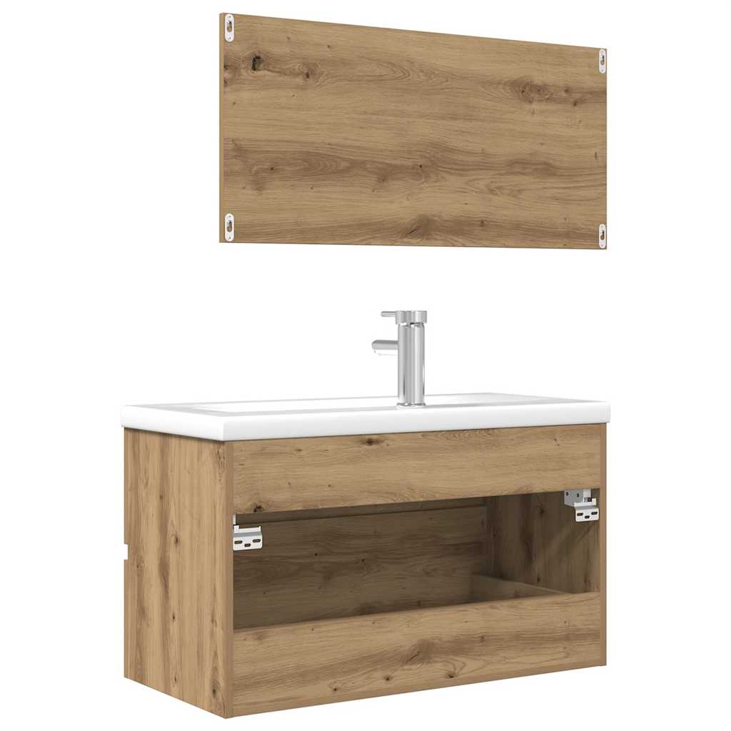Deze trendy badkamermeubelset, bestaande uit een wastafelkast, een inbouwwastafel en een spiegel, past perfect bij je badkamer of wasruimte. Hij heeft een opvallende, opgeruimde uitstraling.