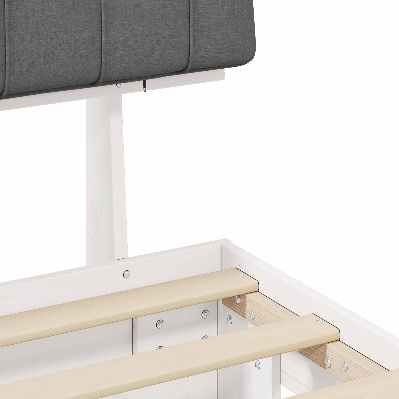 Dit houten bedframe met een gestoffeerd hoofdeinde is een mooi voorbeeld van modern design. Het heeft eenvoudige lijnen die functionaliteit en elegantie combineren, perfect voor hedendaagse slaapkamers. Met zijn massief grenenhouten structuur zorgt het voor een stevige basis die zowel rust als visuele harmonie uitstraalt. Het hoofdeinde is bekleed, wat zorgt voor een zacht contrast en meer comfort in de ruimte.