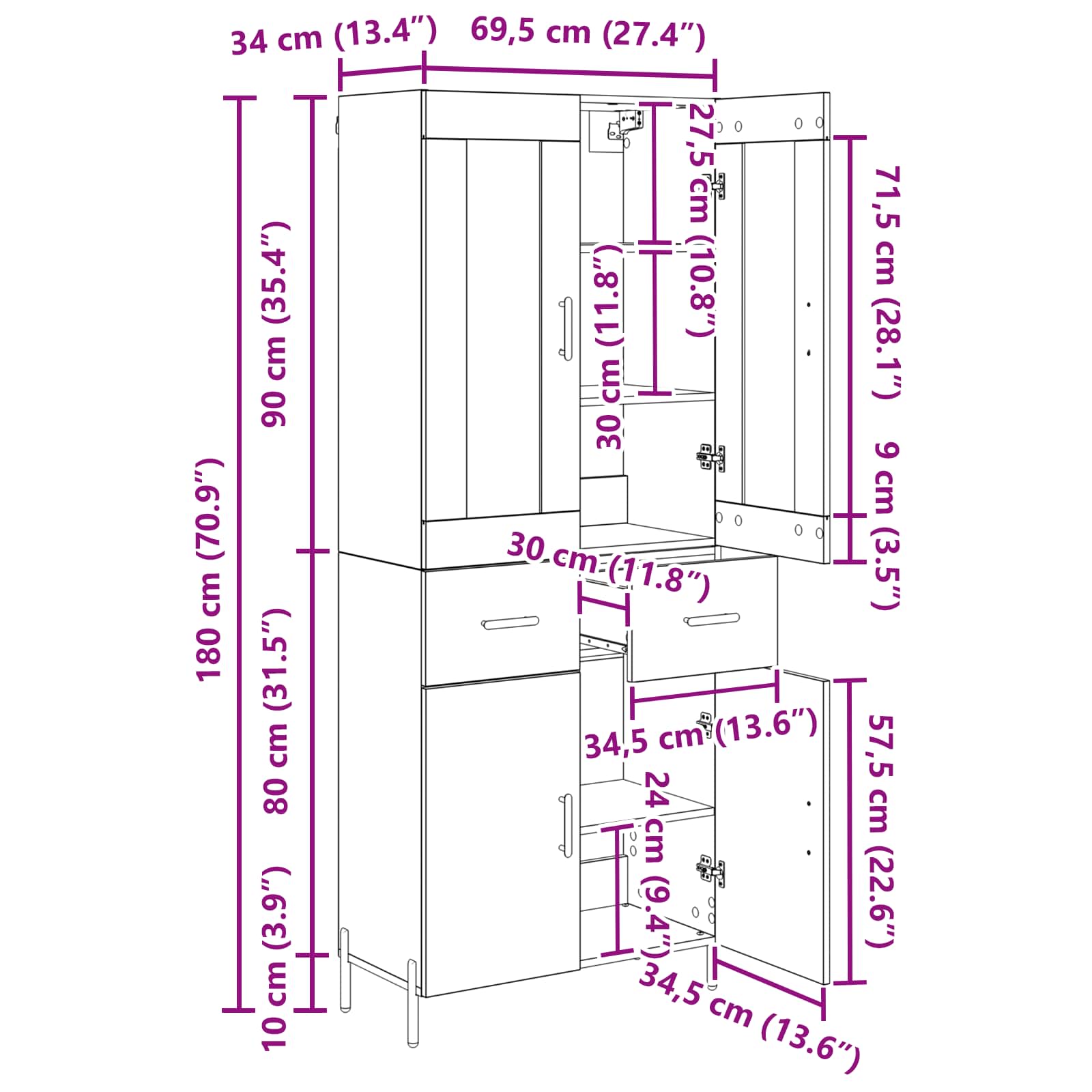- Algemene afmetingen: 69,5 x 34 x 180 cm (L x B x H)